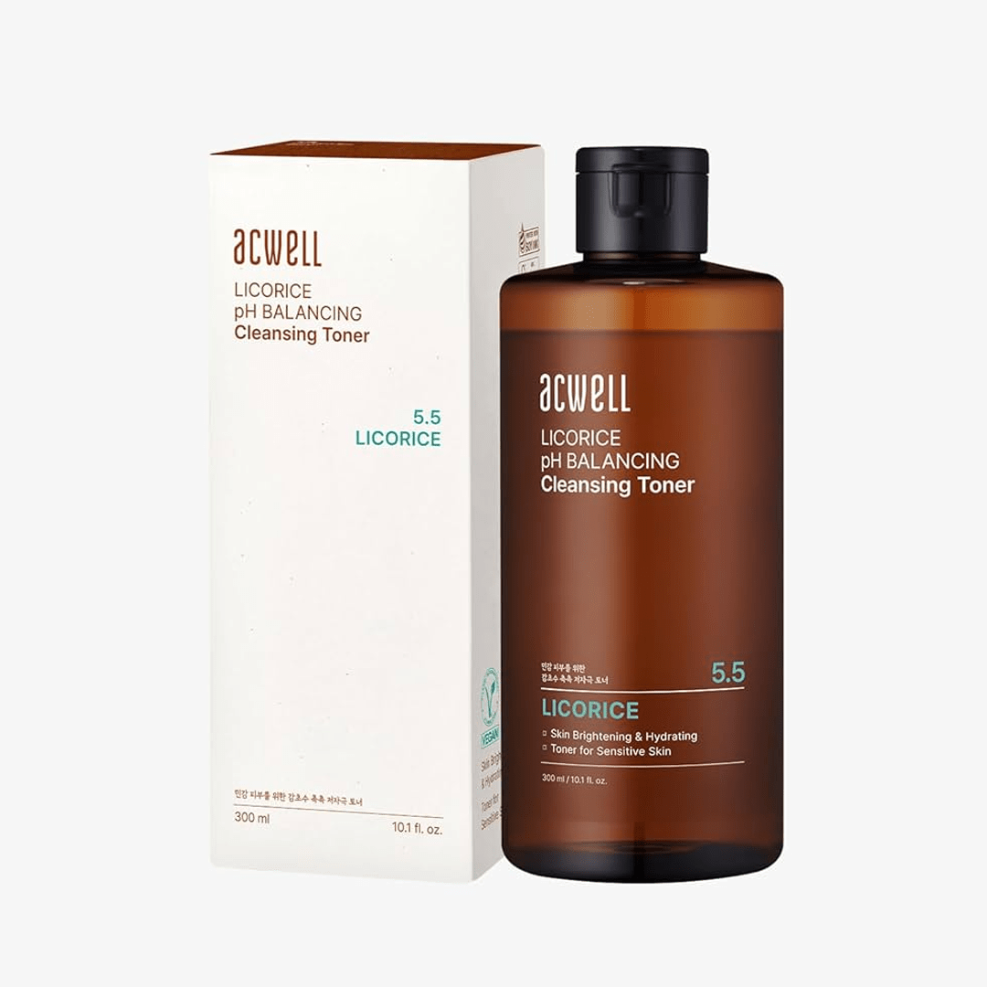 Acwell 5.5 Licorice pH Balancing Cleansing Toner 300ml provides the same incredible balancing and brightening benefits in a value-sized bottle. It deeply cleanses the skin, removing traces of makeup and dirt that cleansers might miss. The licorice root water helps to soothe and brighten, making it perfect for achieving a clear, even complexion. After cleansing, apply the toner to a cotton pad and sweep across your face.