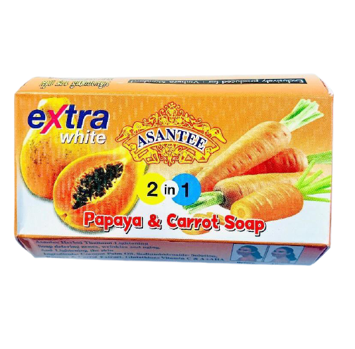 Asantee Extra white Papaya & Carrot soap 6packs is a high-performance whitening system designed for those who want consistent and rapid results in skin brightening. This set features six bars of the intensive Papaya and Carrot soap, ensuring you can maintain a flawless routine across both the face and body. The soap harnesses the natural enzymatic power of papaya and the rejuvenating properties of carrot oil to target melanin production and clear up skin imperfections.