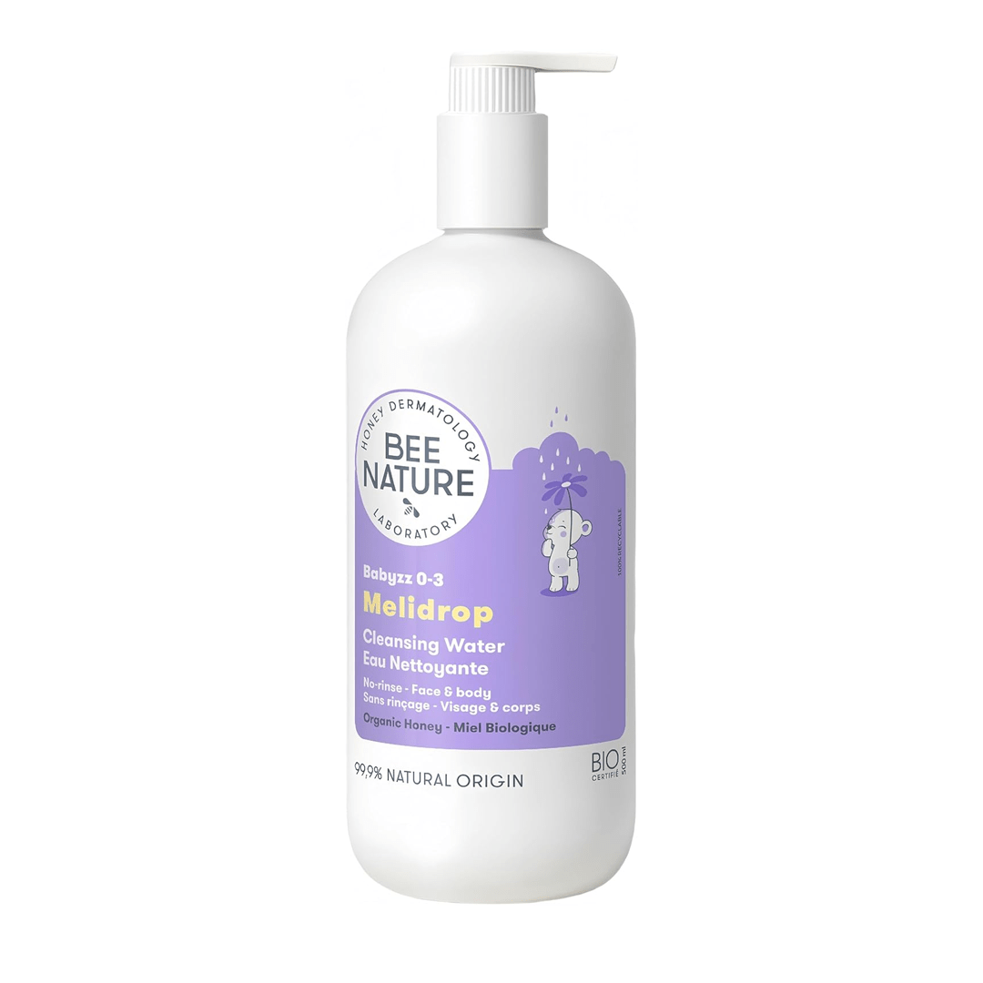 Bee Nature Babyzz 0-3 Melidrop Cleansing Water 500ml is a gentle, no-rinse solution for infants. Formulated with honey and natural extracts, it effectively removes impurities from the face and body while protecting the skin’s natural barrier. This soap-free cleansing water is hypoallergenic and perfect for quick clean-ups or diaper changes.
