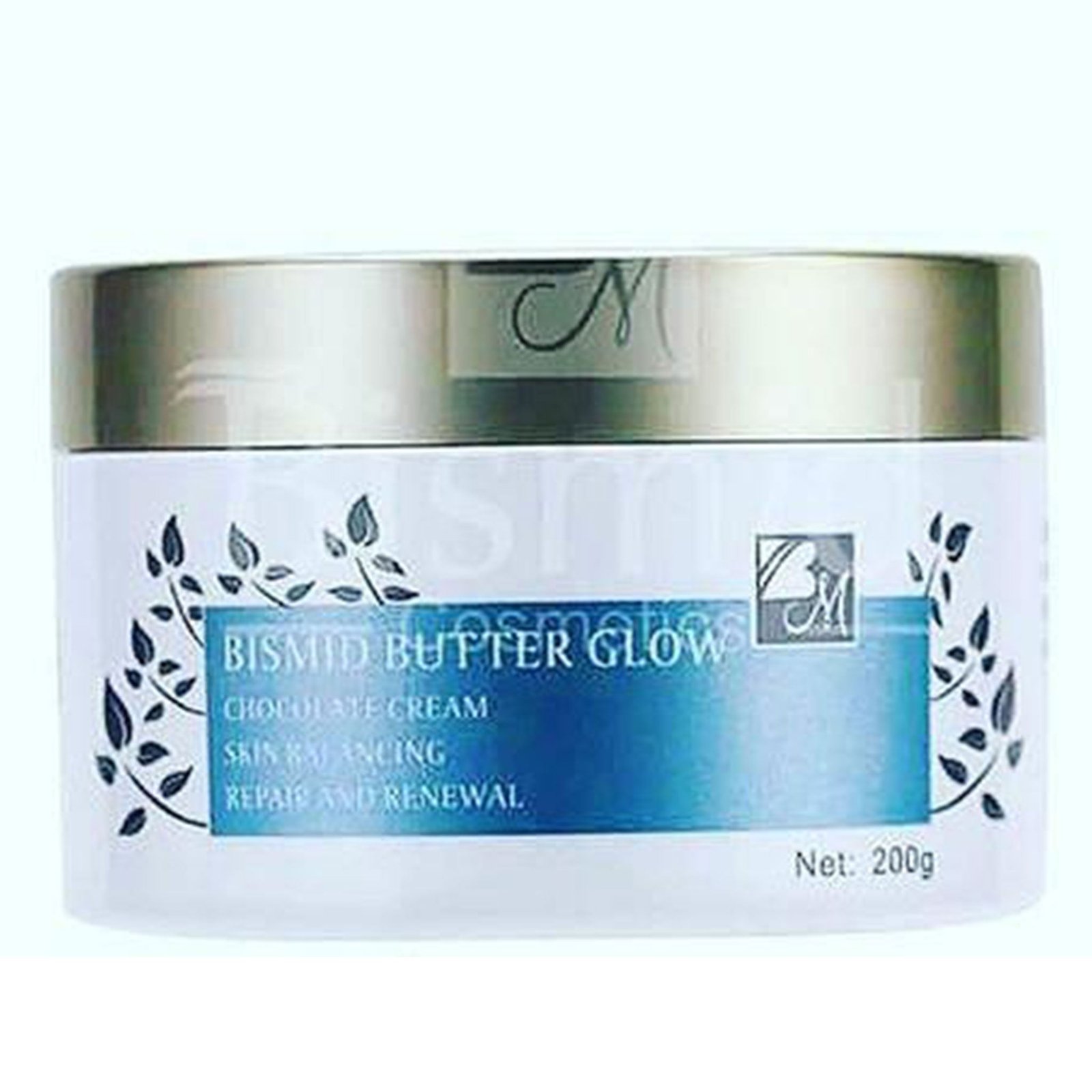 + Delivery in 24 Hours!Bismid Butter Glow Chocolate Cream – 200g is the rich cream for brown skin tones with Cocoa and Shea Butter that enhances natural color and adds a chocolate glow.