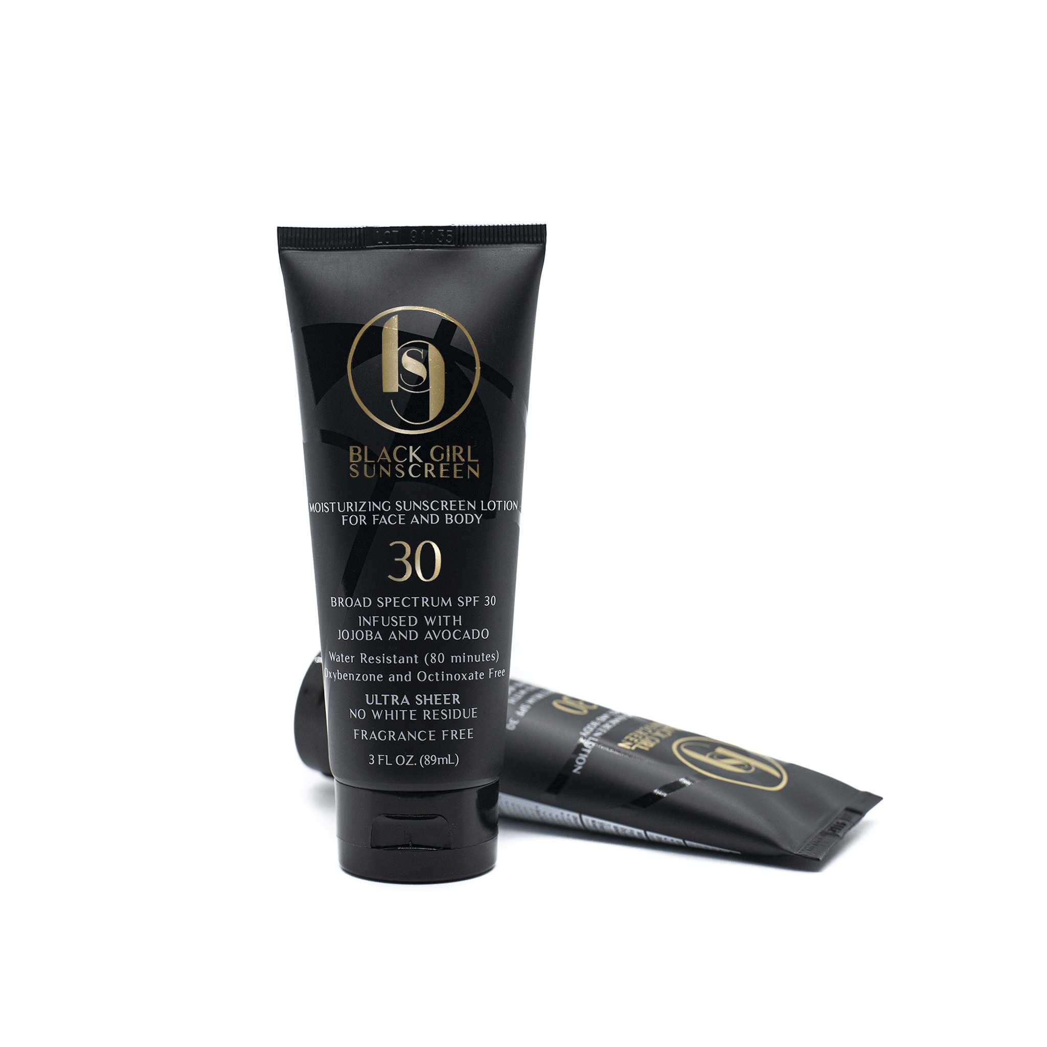 Black Girl Moisturizing Sunscreen SPF 30 is specifically formulated for women of color. It dries completely clear, leaving absolutely zero white cast on the skin. Infused with natural ingredients like Jojoba and Avocado, it doubles as a moisturizer, keeping the skin hydrated while protecting it from the sun. It is suitable for both face and body and is fragrance-free.