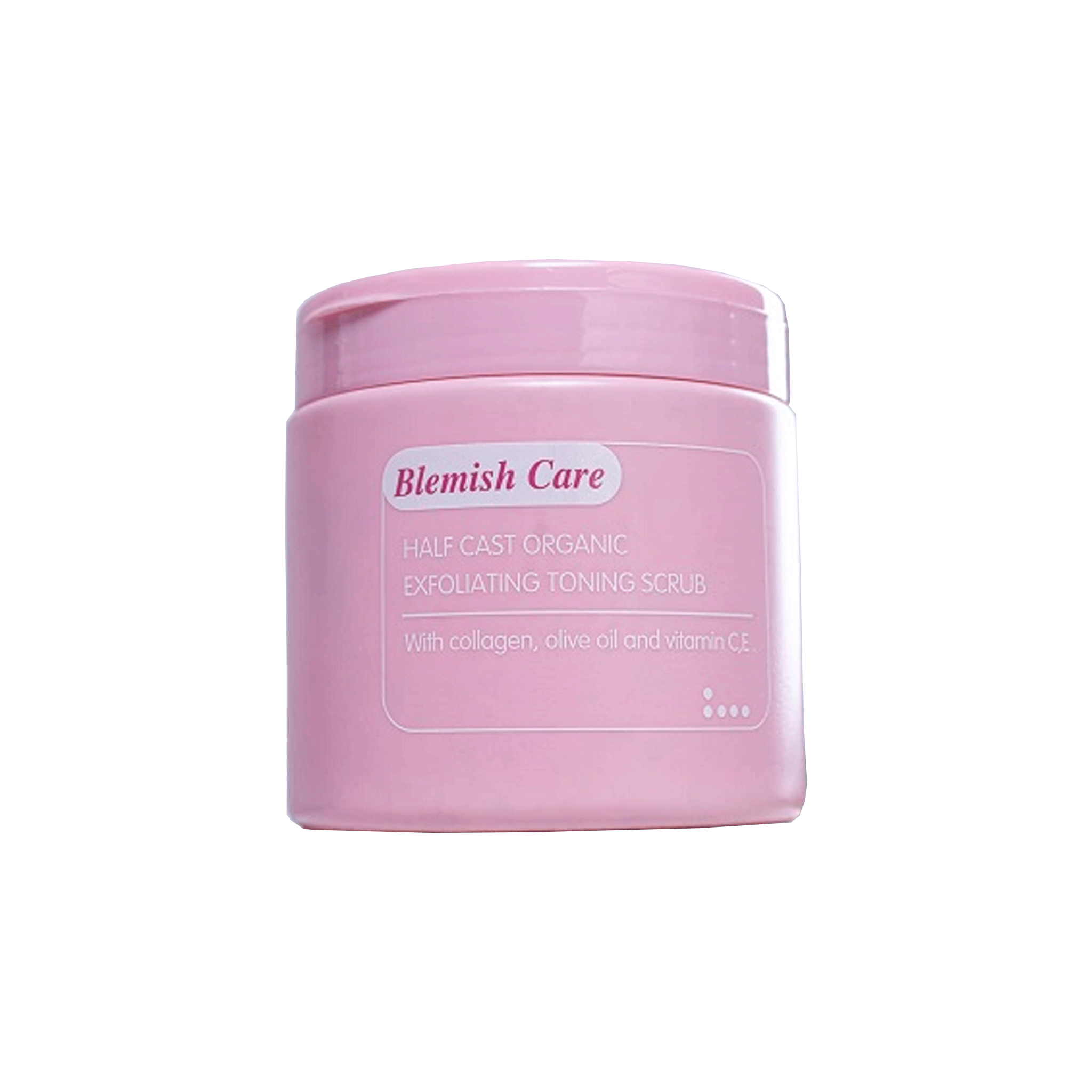 Blemish Care Half Caste Organic Exfoliating Scrub is a natural body polish. It is formulated to achieve a “Half Caste” tone using organic exfoliants. It removes dead skin cells and impurities without harsh chemicals. It brightens the skin and smooths texture. It leaves the body soft and light. To use, massage onto wet skin. Rinse. Regular use maintains a glow.