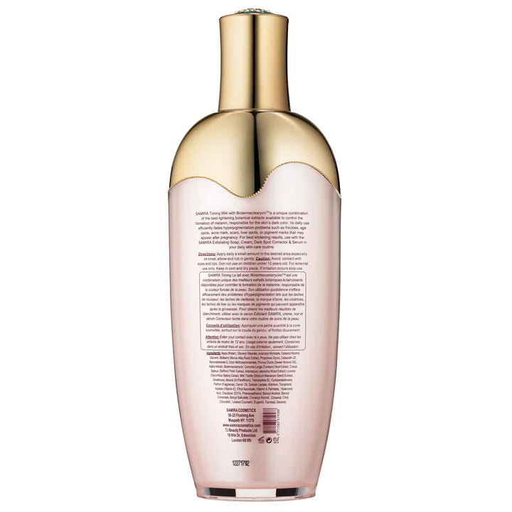 Brightening Samira Toning Milk 500ML is a high-performance skin-lightening lotion designed for individuals who desire a professional-grade solution for body brightening. This large 500ml bottle is packed with advanced whitening complexes and botanical extracts that work to inhibit melanin production and clear up skin imperfections. It targets stubborn dark areas such as the elbows, knees, and knuckles, providing a uniform and luminous finish.