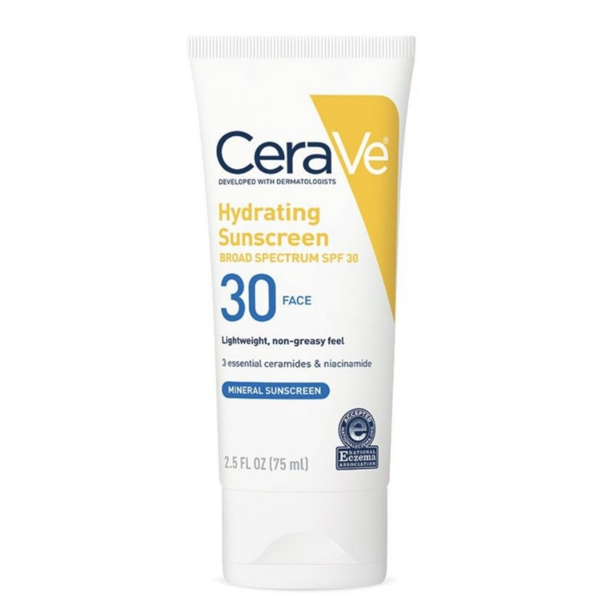 Cerave Hydrating Sunscreen SPF-30 is a professional-grade facial sunscreen that provides broad-spectrum protection while nourishing the skin’s natural barrier. The benefit of this sunscreen is its 100% mineral-based formula featuring Zinc Oxide and Titanium Dioxide, which reflect UV rays without causing irritation. It is enriched with three essential Ceramides (1, 3, 6-II) and Hyaluronic Acid, which work together to lock in moisture and restore the skin’s protective layer.