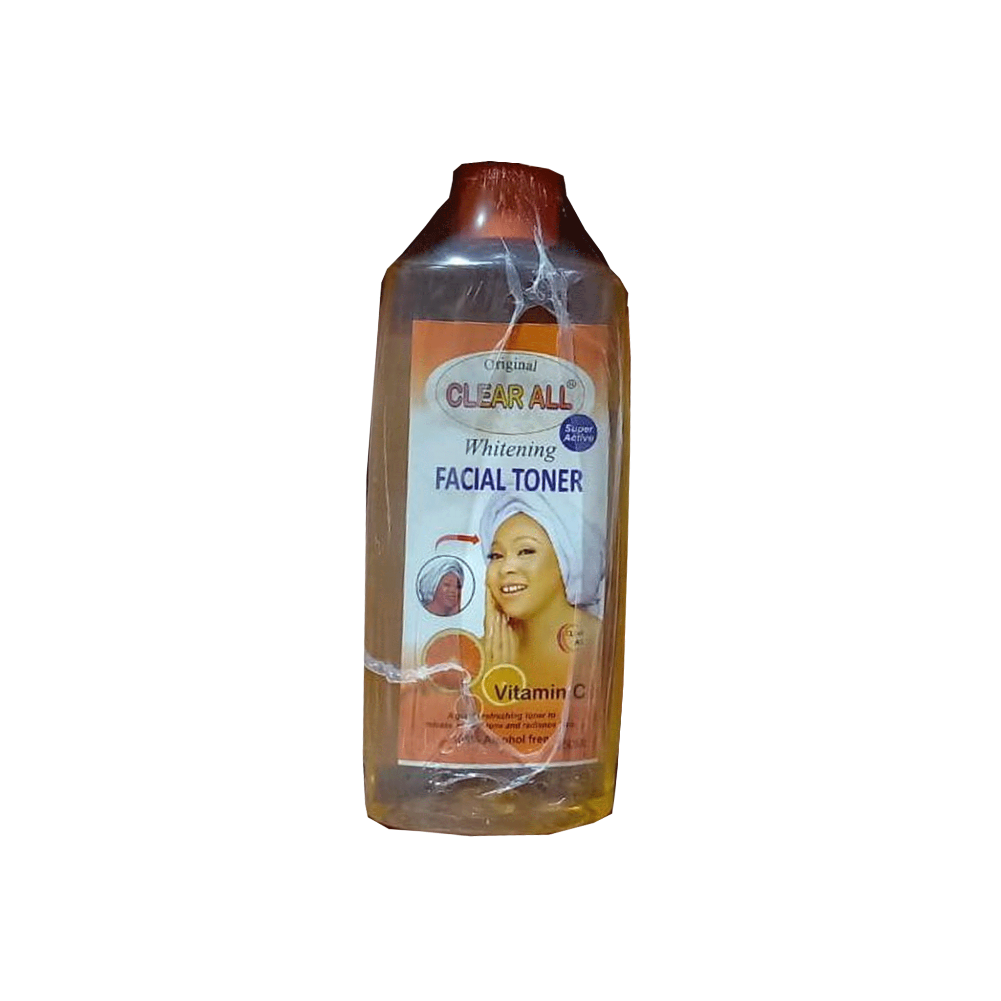 Clear All Whitening Facial Toner is a refreshing and vital step in your daily brightening skincare routine. The primary advantage of this toner is its ability to remove the final traces of impurities while balancing the skin’s pH and providing a mild chemical exfoliation. It is specifically formulated with active brightening agents that work to illuminate the skin and prepare it for the absorption of active serums and moisturizers.