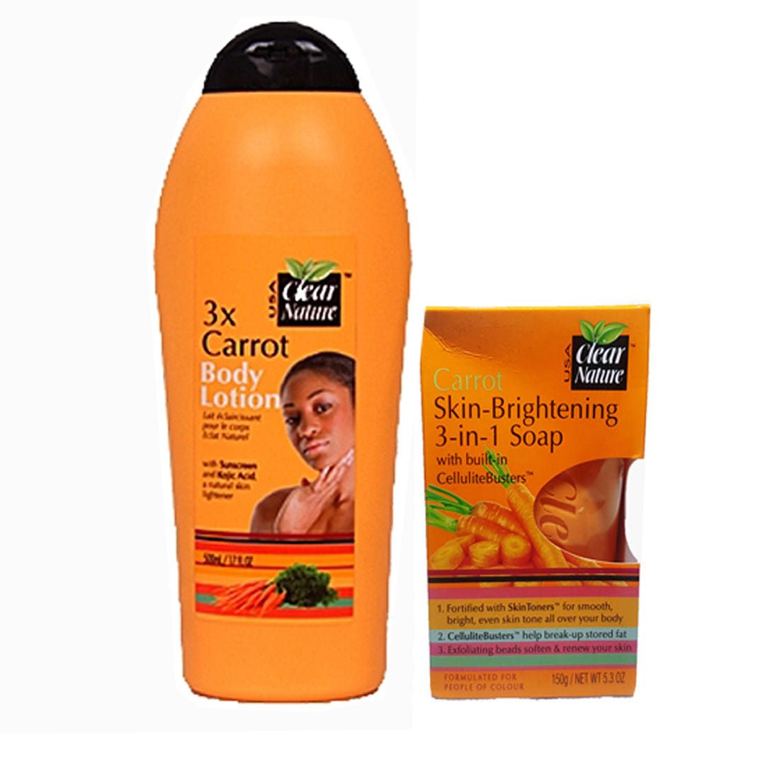 + Delivery in 24 Hours!Clear Nature Carrot ( Carrot Lotion And Carrot Soap ) Pack of 3 is the 2-piece whitening set featuring Carrot Soap and 3X Carrot Lotion that works together to repair skin and fade dark spots.