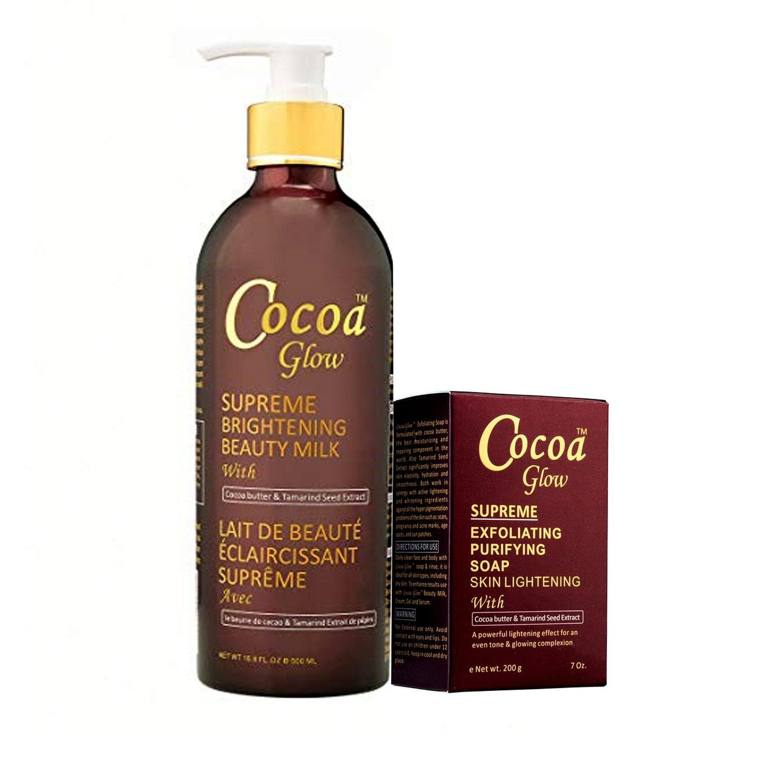 + Delivery in 24 Hours!The 2-piece whitening set from Cocoa Glow featuring lotion and soap designed for intensive brightening and soft skin.