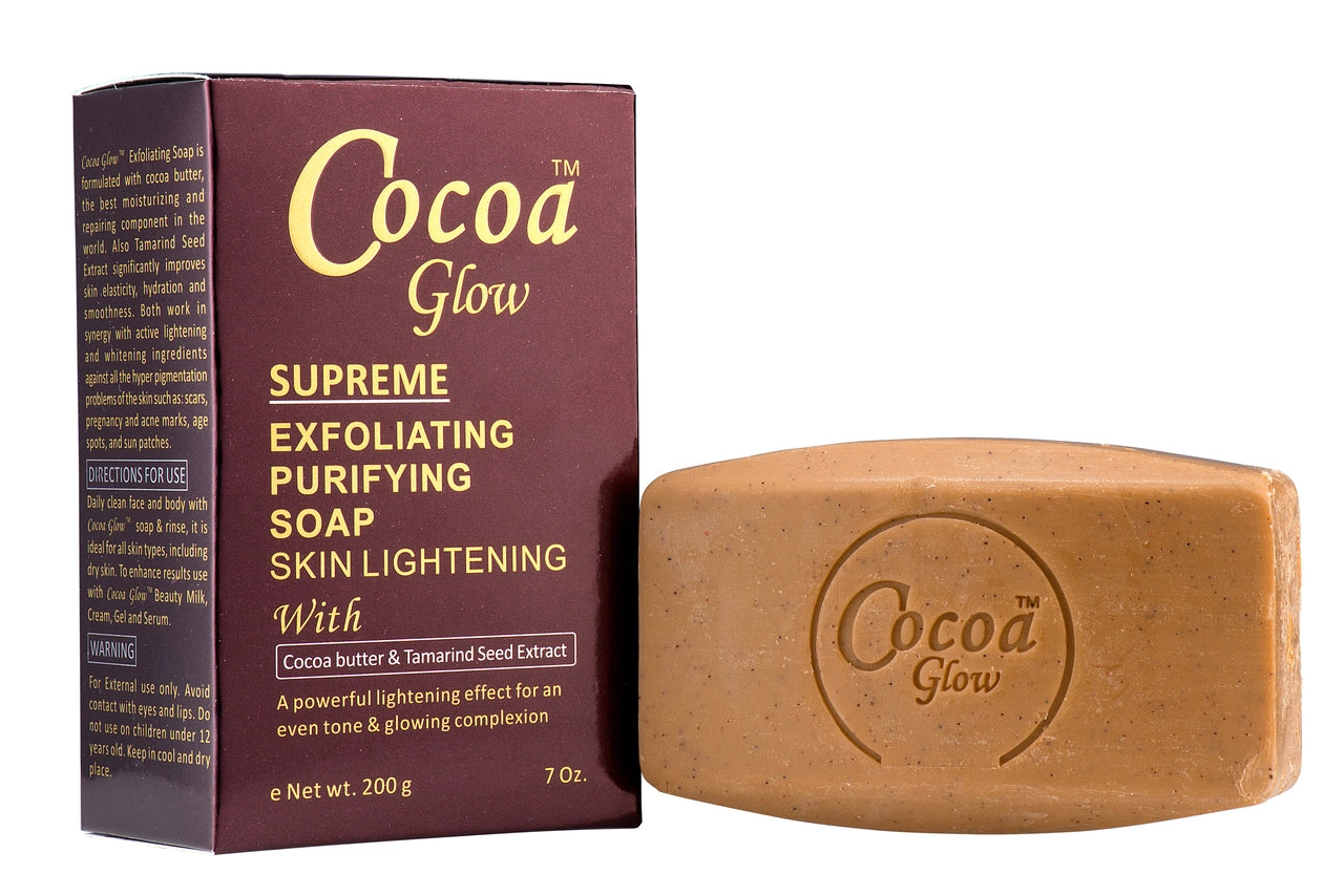 + Delivery in 24 Hours!Cocoa-Glow-Supreme-Exfoliating-Soap 200g is the exfoliating soap with Cocoa Butter that removes dead skin cells and fades dark spots for a smooth, glowing complexion.