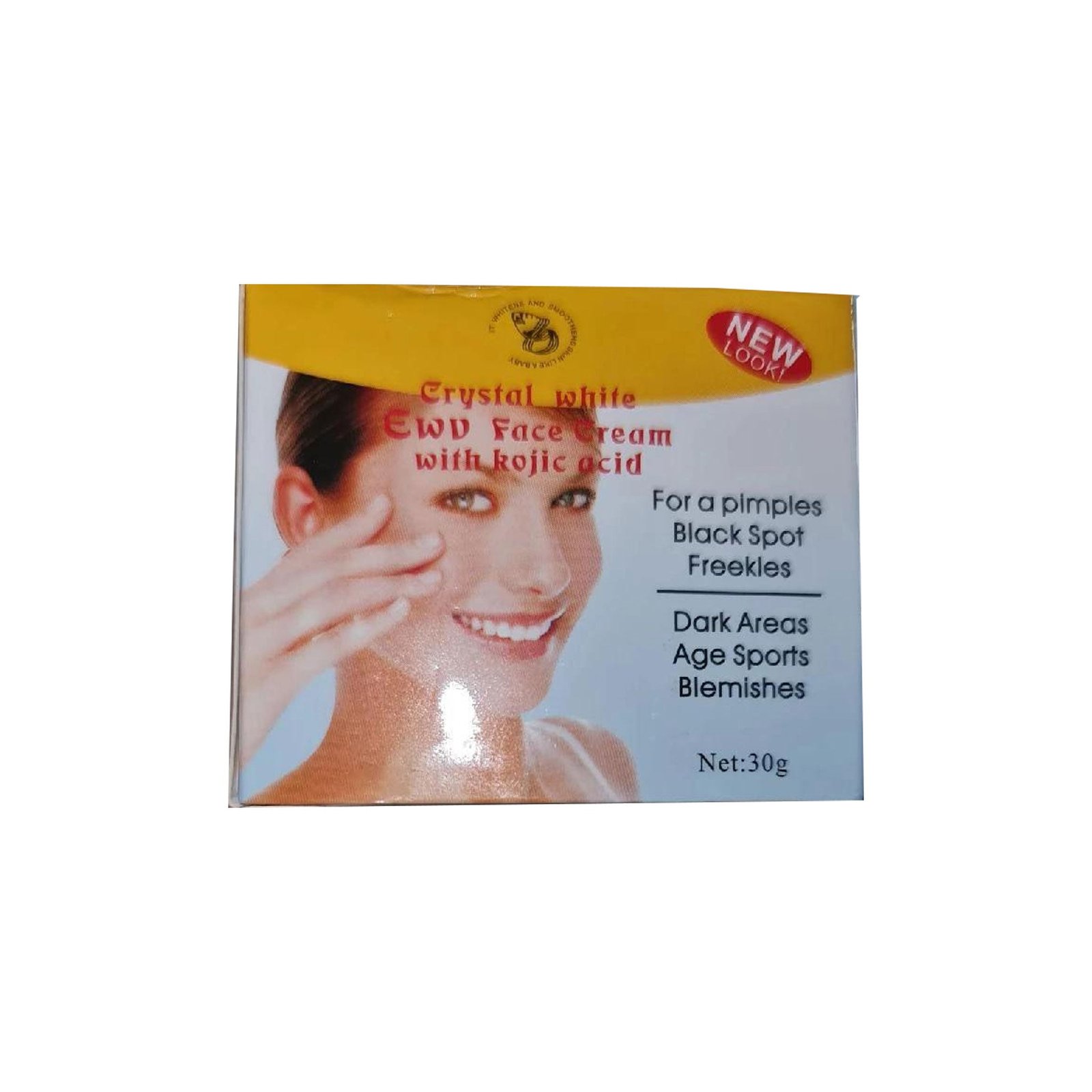 + Delivery in 24 Hours!Crystal White Ewuv Face Cream With Kojic Acid 30g is the 30g whitening face cream with Kojic Acid that targets and fades dark spots and acne scars for a clear tone.