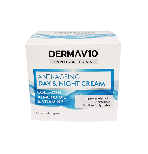 Derma V10 Innovation Collagen Day and Night Cream (50ml) is a versatile moisturizer. Formulated with Collagen, Almond Oil, and Vitamin E, it hydrates and improves skin elasticity. It is suitable for use both morning and evening, simplifying your routine. It helps to smooth fine lines and keep skin soft. Reginah.com guarantees delivery to your location within 24 to 48 hours, for daily care.