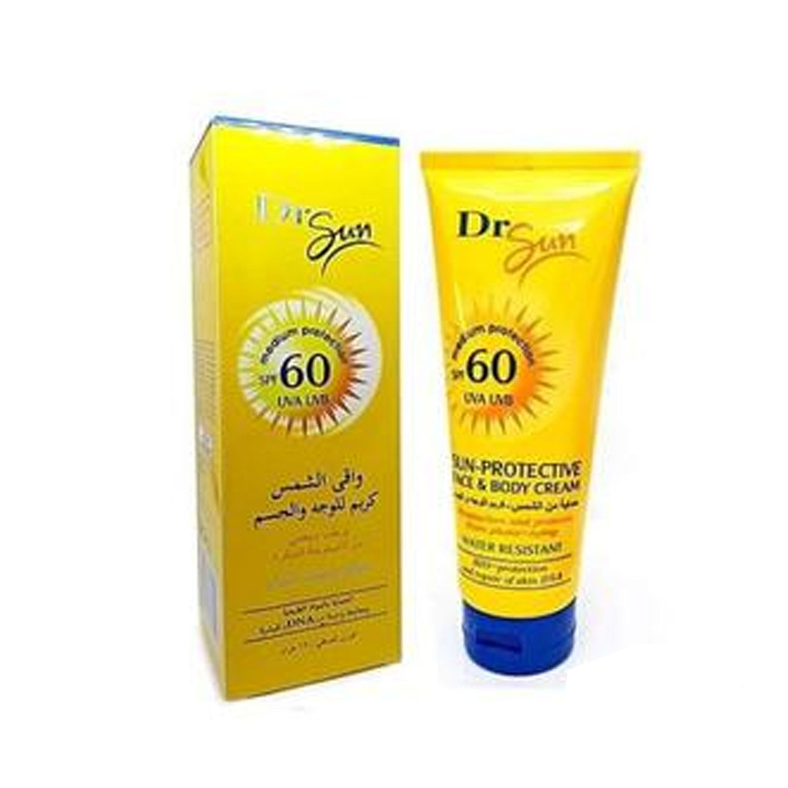 Dr Sun SPF 60 Face & Body Cream is a high-potency sun protection treatment designed to safeguard your skin from the harmful effects of the tropical sun. This cream provides superior broad-spectrum SPF 60 defense against both UVA and UVB rays, effectively preventing sunburn, hyperpigmentation, and the visible signs of premature aging. Formulated to be used on both the face and body, it features a non-greasy texture that absorbs quickly without leaving a white cast or a sticky residue.