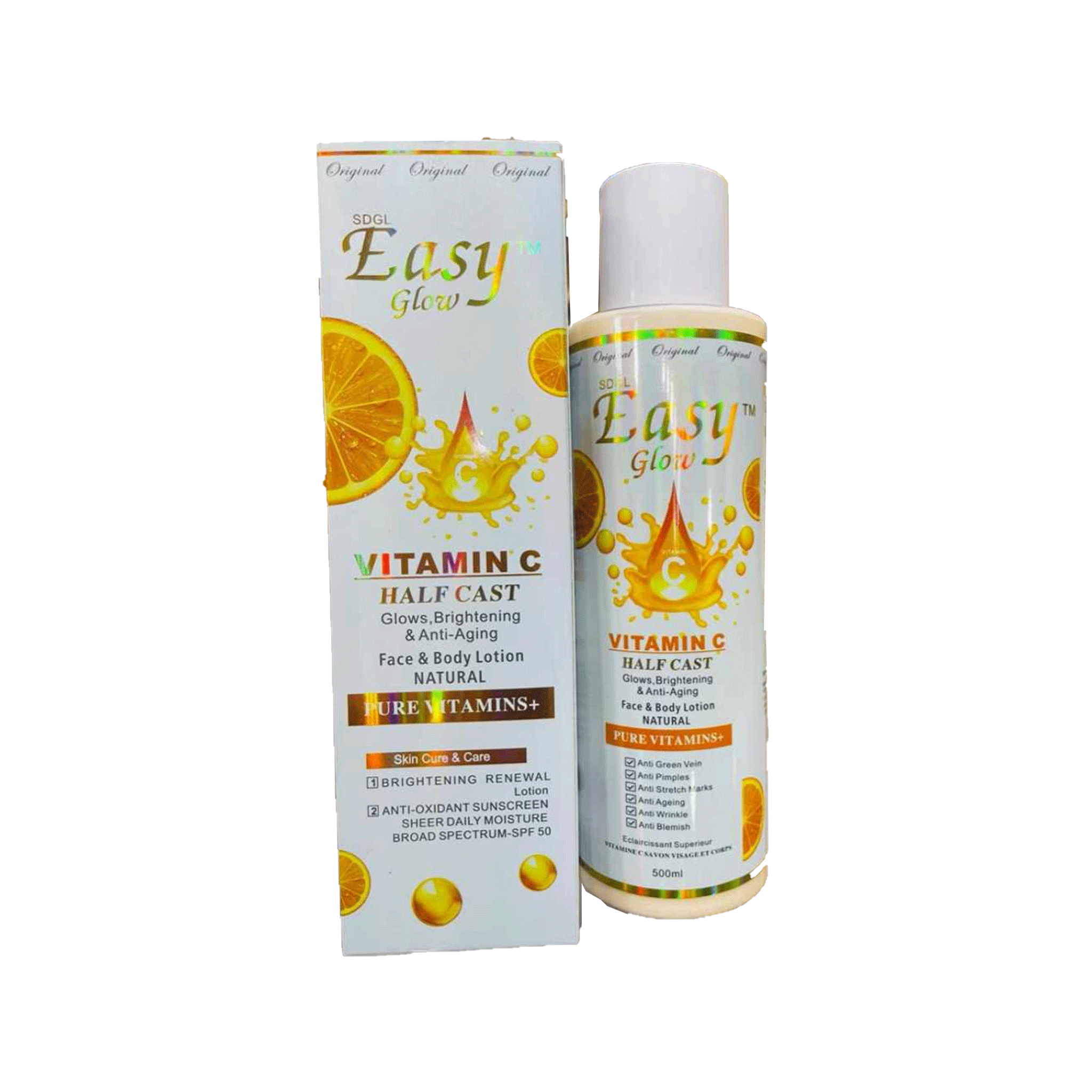 + Delivery in 24 Hours!Easy Glow Vitamin C Halfcast Lotion is the high-potency whitening body lotion with Vitamin C that targets stubborn dark marks and provides 48-hour hydration for a flawless, radiant glow.
