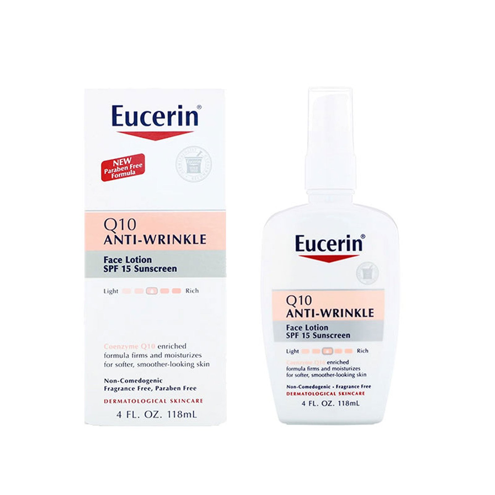 Eucerin Q10 Anti-Wrinkle Face Lotion is a dermatologist-recommended daily treatment designed to protect and firm sensitive facial skin. Formulated with Coenzyme Q10, a natural antioxidant found in the body that helps to defend against the aging process, this lotion works to reduce the appearance of fine lines and wrinkles in as little as five weeks.