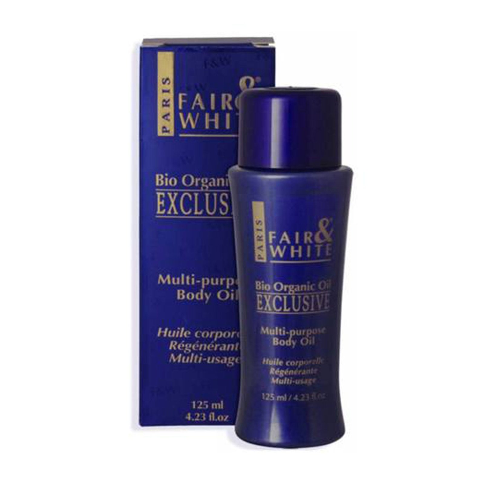 + Delivery in 24 Hours!Fair and White Exclusive Bio-Organic Body Oil 125ml is the 125ml bio-organic body oil that hydrates deeply, repairs skin tissue, and imparts a golden radiance to the body for a smooth, fair look.