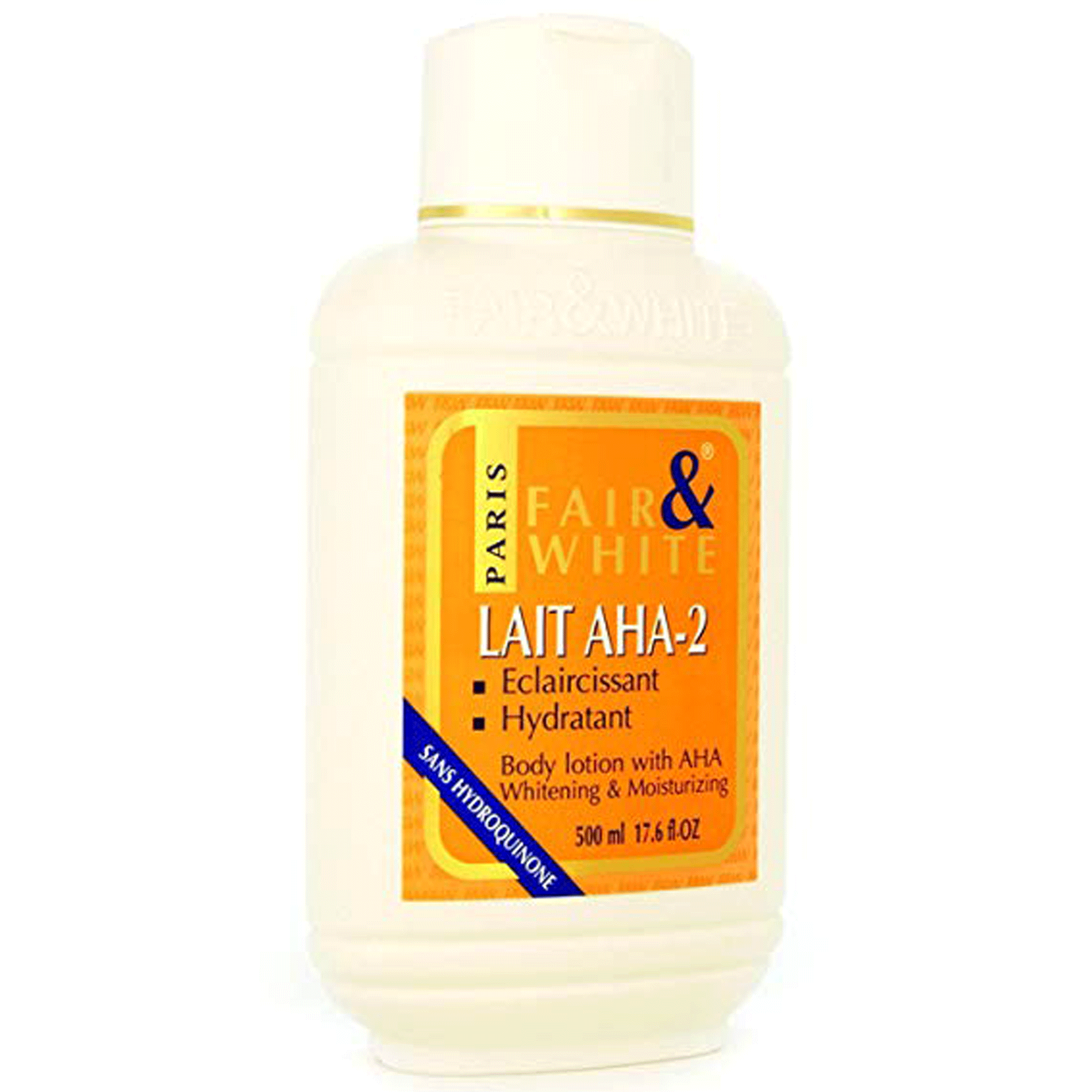 Fair and White Original AHA Body Lotion (500ml) is an intensive skin-lightening moisturizer designed for rapid results and a uniform complexion. This high-performance lotion is formulated with a potent concentration of Alpha Hydroxy Acids (AHA), primarily Lactic Acid, along with active brightening agents. The AHAs provide chemical exfoliation, removing the outer layer of dead, pigmented skin cells to reveal the fresher and much lighter skin underneath.