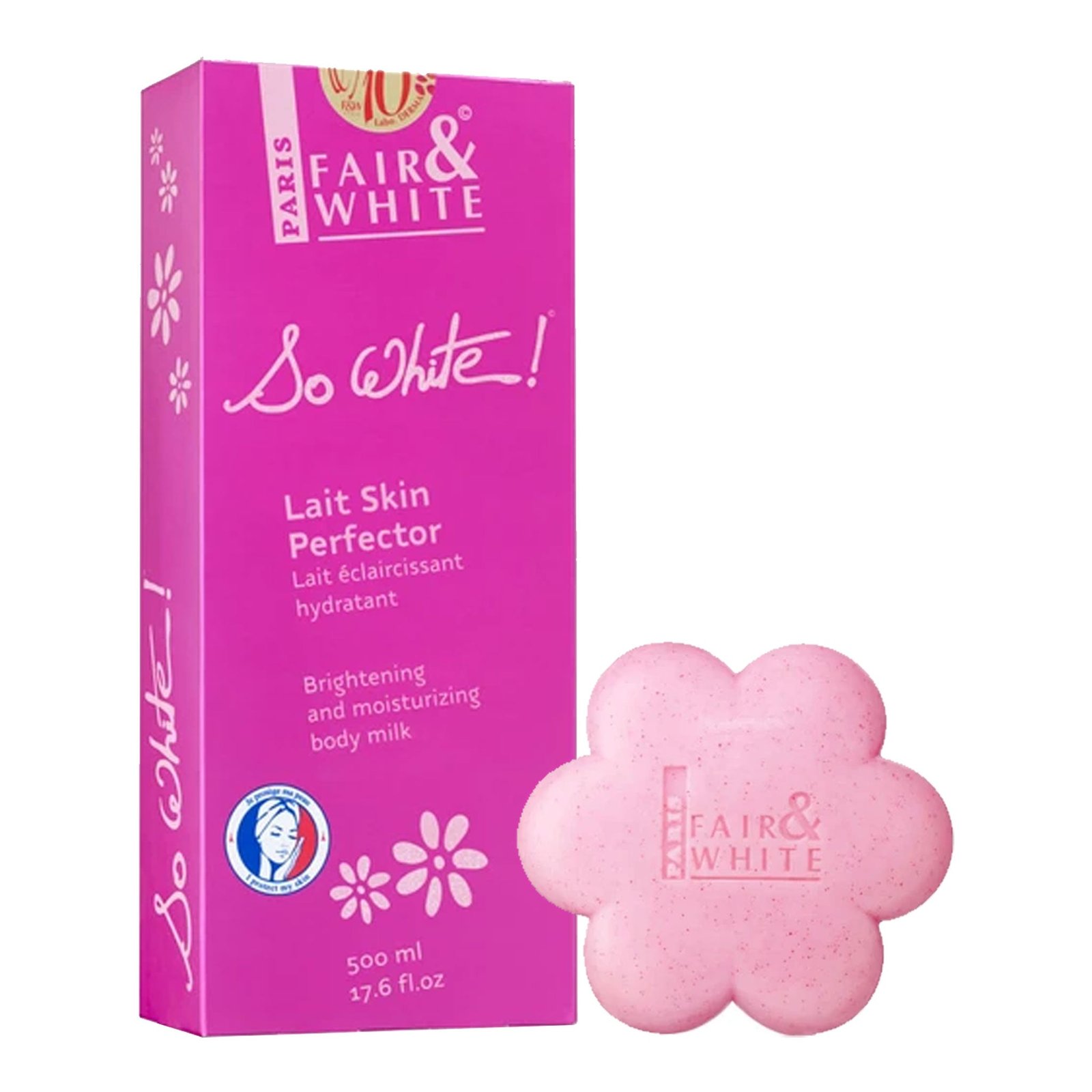 FAIR AND WHITE SO WHITE SKIN PERFECTOR 2pc SETS is the high-performance beauty regimen designed for significant skin tone correction and radiance. This specialized Pack of 3 of FAIR AND WHITE SO WHITE SKIN PERFECTOR 2pc SETS features the So White Soap and the high-potency Body Milk. The formula is powered by active brightening agents that work to inhibit the overproduction of melanin, effectively fading stubborn dark spots and acne marks.