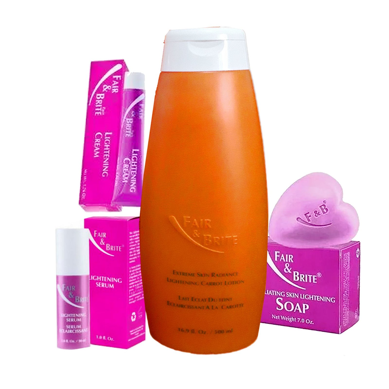 Fair & Brite ( Lotion, Soap, Tube And Serum ) Pack of 3-3 is an intensive body care regimen designed for significant skin brightening and tone correction. This Pack of 3 features a Toning Soap, a high-performance Body Milk, a concentrated Toning Serum, and a targeted treatment Tube cream. The system works together to reveal a fairer complexion across the limbs and torso.