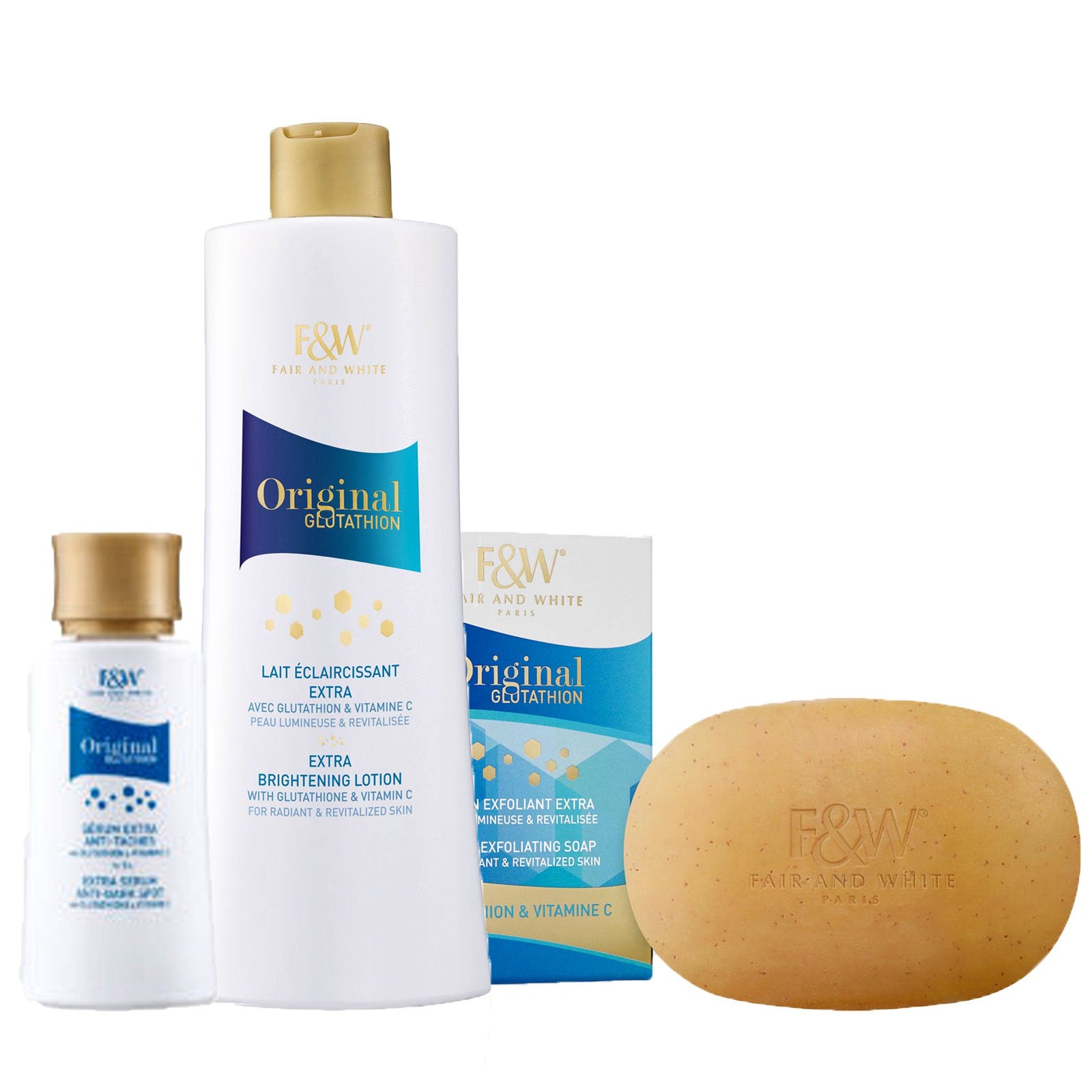 Fair & White Original Glutathione Extra Whitening Pack Of 3 (Lotion, Soap & Serum)