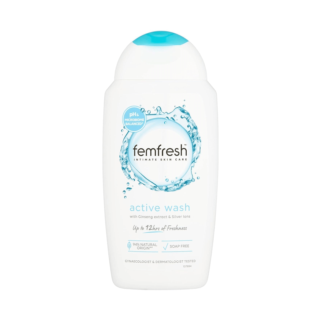 Femfresh Active Wash 250ml is a pH-balanced intimate cleanser specifically designed for use after exercise or long days. The benefit of this wash is its unique formula enriched with silver ions and ginseng, which provides up to 12 hours of freshness and odor protection. It is much more suitable for intimate areas than regular body washes or soaps, which can disrupt the natural pH balance and cause irritation.