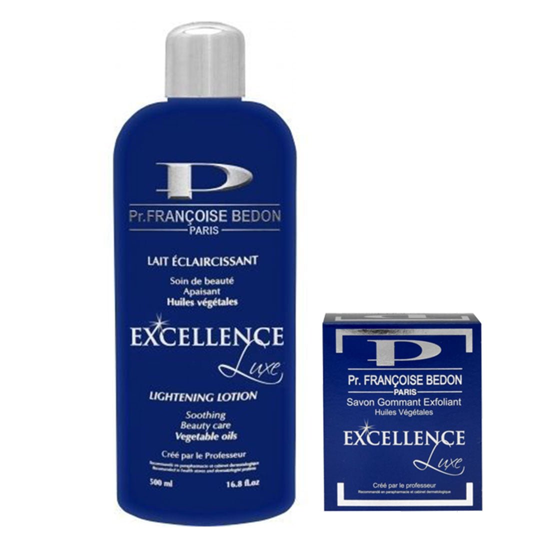+ Delivery in 24 Hours!Francoise Bedon Excellence ( Lotion And Soap ) Pack of 3 – Luxury 2-piece set with Lotion and Soap enriched with vegetable oils for premium lightening and care.