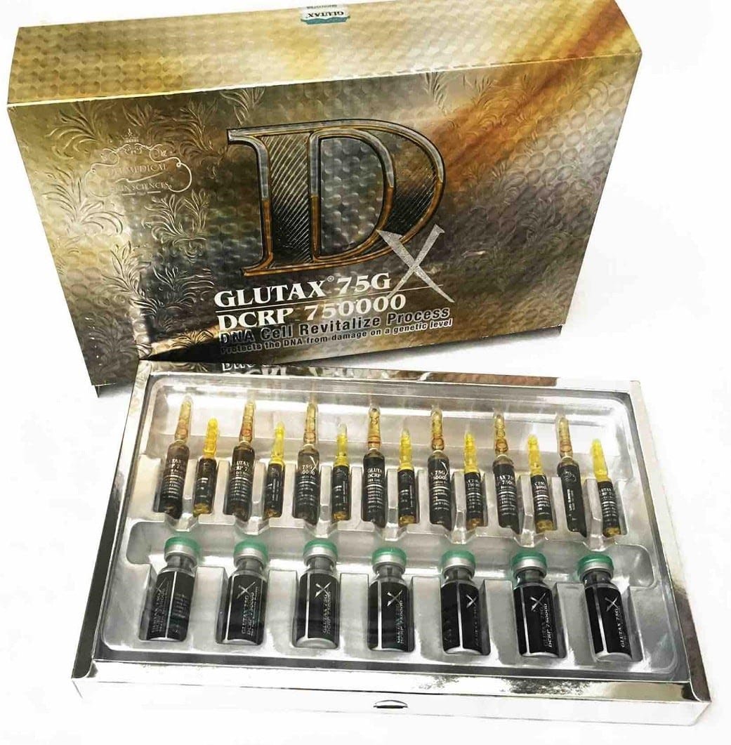 + Delivery in 24 Hours!GLUTAX 75G DCRP 750000 DNA CELL Revitalize – 1 BOX 14 SET is the premium Glutathione injection kit with DNA Cell technology that whitens skin, revitalizes cells, and provides anti-aging benefits.