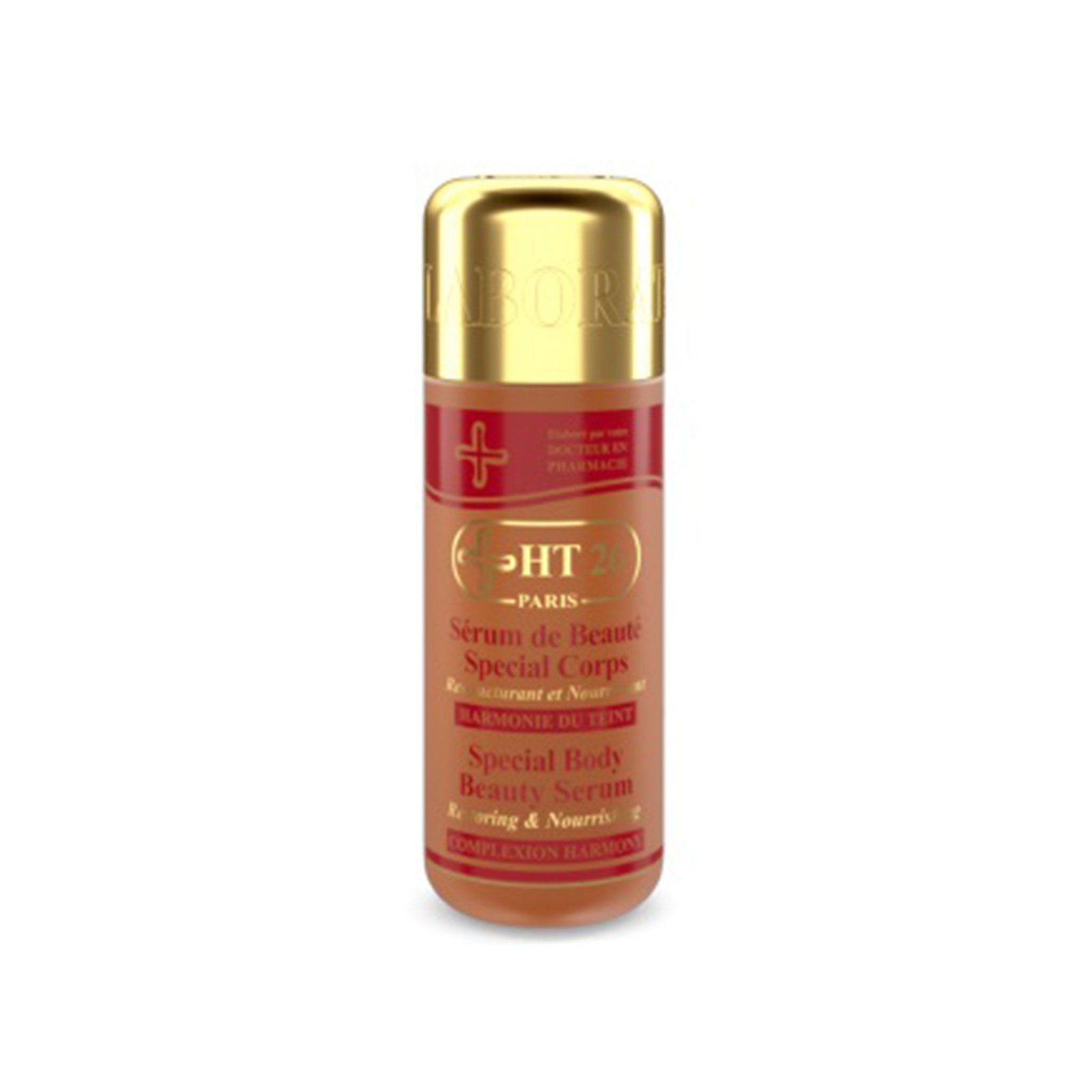 HT26 – Special Body Beauty Serum is a high-potency beauty treatment designed for intensive skin tone correction and total body radiance. This formula is part of the professional range, enriched with a concentrated blend of active brightening agents and botanical extracts. It works by inhibiting melanin synthesis at the source, effectively fading stubborn dark spots, scars, and hyperpigmentation across the limbs and torso.