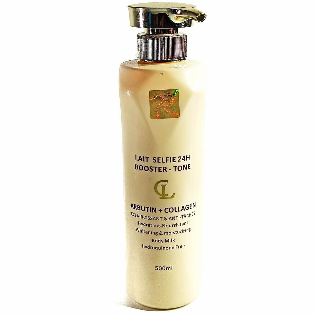 Lait selfie 24H Booster Tone Body Milk With Alpha Arbutin and Collagen is designed to give you a flawless, “filter-like” complexion in real life. This high-performance body lotion features a powerful 24-hour moisture-locking formula. It is anchored by Alpha Arbutin, a safe and highly effective natural whitener that fades dark spots and unifies the skin tone.