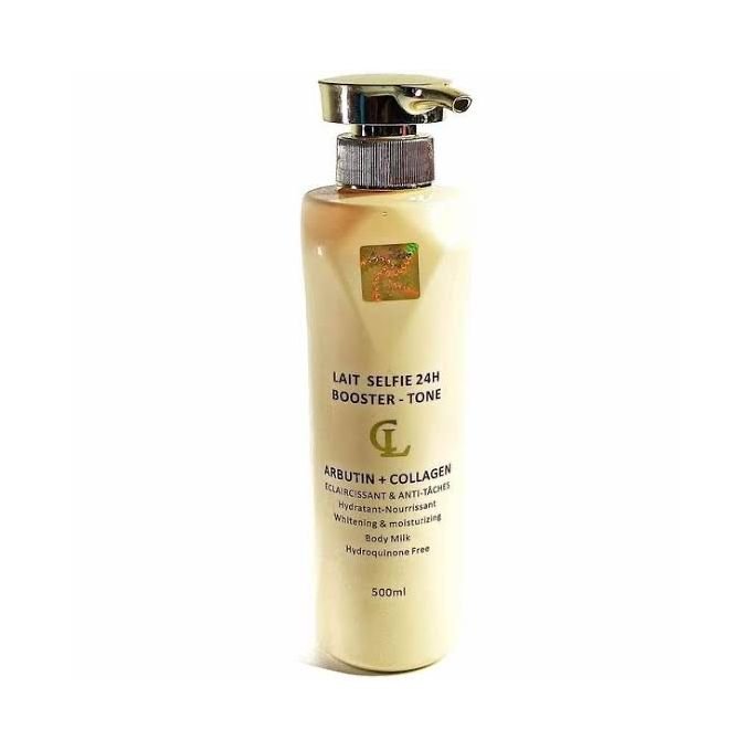 Lait selfie 24H Booster Tone Body Milk With Alpha Arbutin and Collagen is a modern and high-performance treatment designed to give you a “selfie-ready” complexion. The primary benefit of this body milk is the combination of Alpha Arbutin, a safe and effective skin brightener, and Collagen, which helps to improve skin firmness and elasticity.