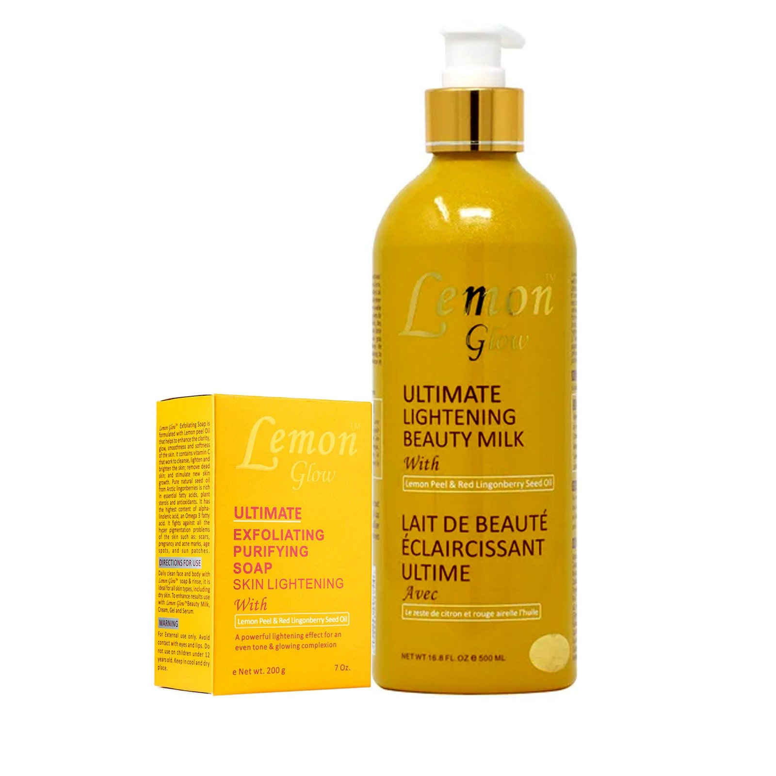 + Delivery in 24 Hours!The 2-piece whitening set from Lemon Glow featuring a beauty milk and soap for an intensive and radiant body tone.