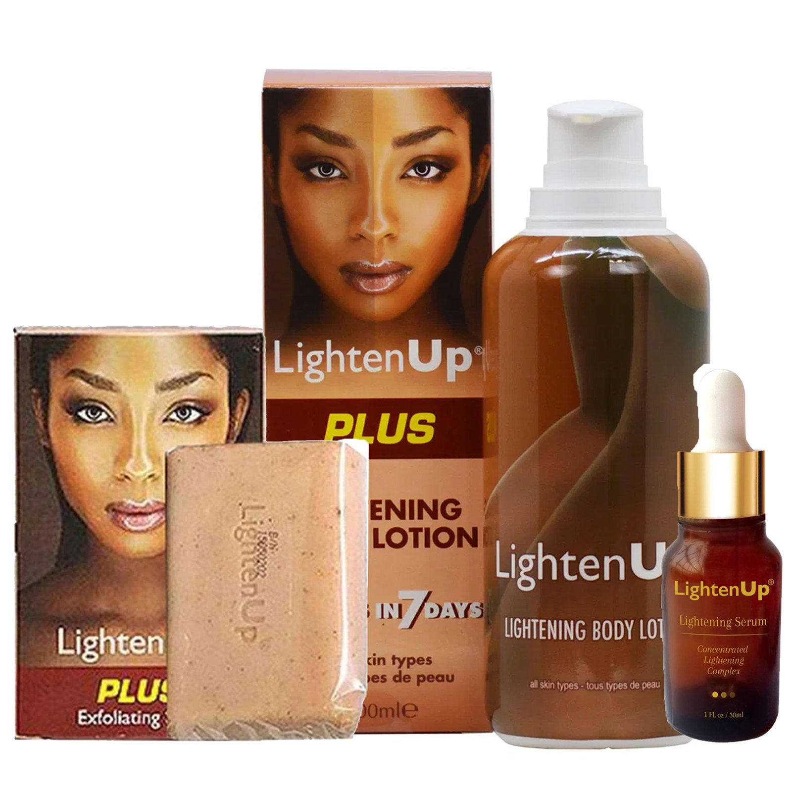 + Delivery in 24 Hours!The 3-piece whitening set from Lighten-Up Plus featuring lotion, serum, and soap for an intensive and radiant body tone.