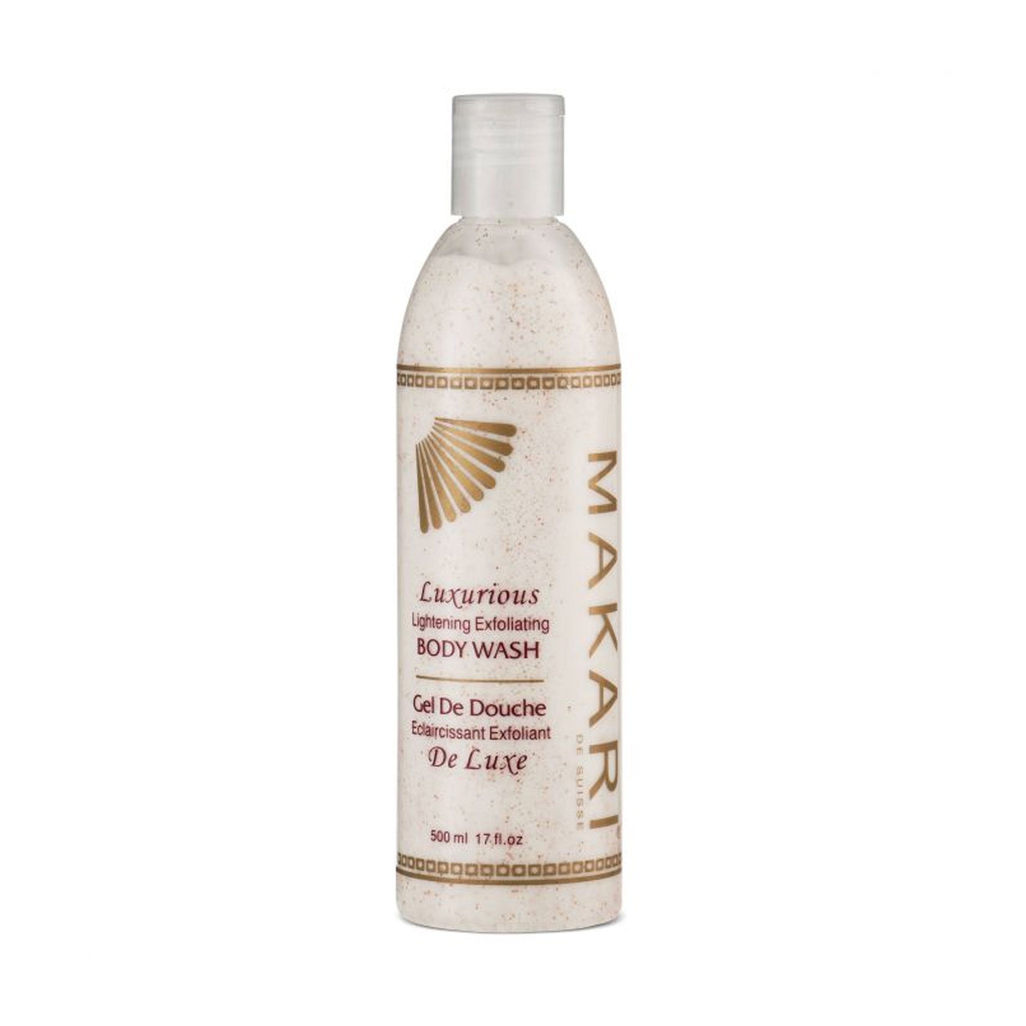 Makari Luxurious Exfoliating Body Wash is a premium daily cleanser designed to simplify your whitening routine while providing a spa-like experience. This body wash is formulated with active botanical whitening agents and exfoliating micro-beads. It works by gently scrubbing away dead skin cells and impurities during your daily shower, which is essential for maintaining a bright and radiant complexion.