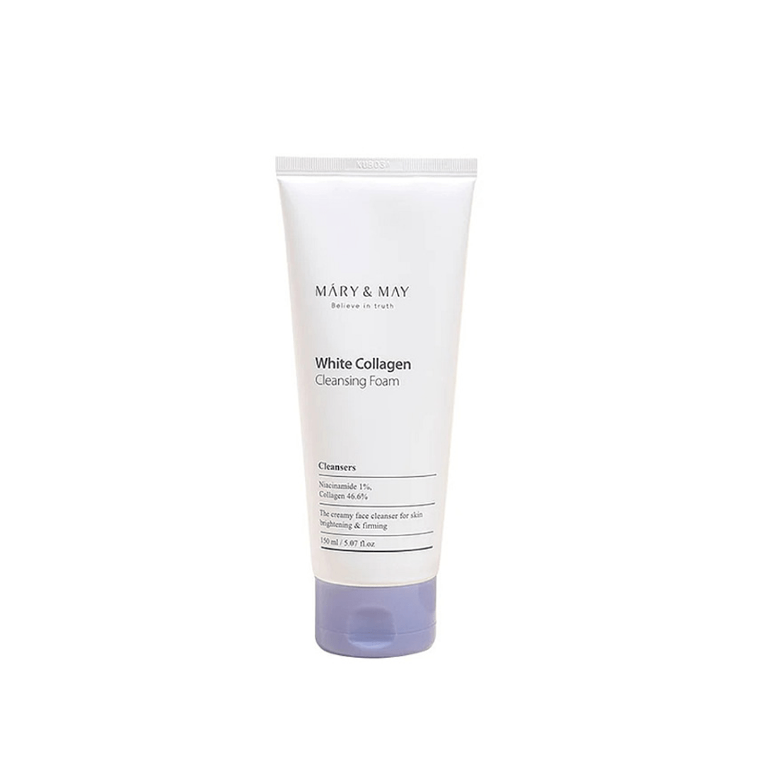 The Mary & May White Collagen Cleansing Foam 150ml is a premium daily face wash designed to provide a thorough clean while addressing the signs of aging. The benefit of this cleanser is its high concentration of low-molecular marine collagen, which is small enough to be absorbed more effectively by the skin compared to standard collagen. This helps to maintain skin elasticity and firmness even during the cleansing process.