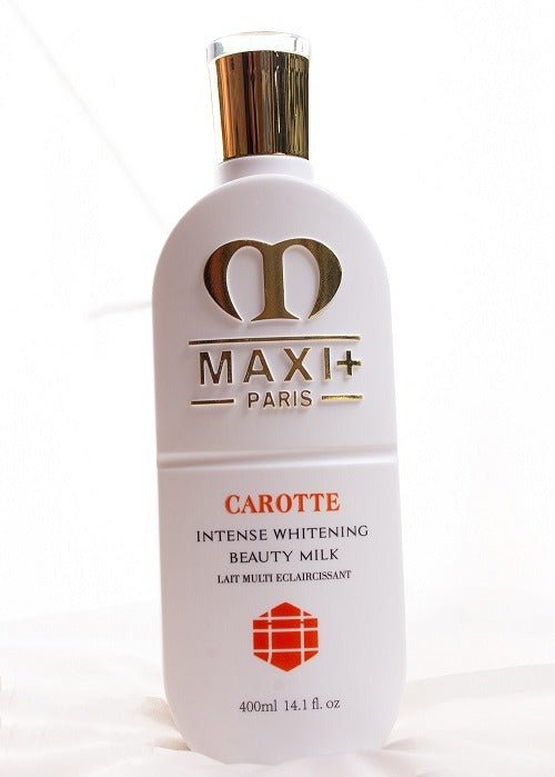 + Delivery in 24 Hours!Maxi+ Carotte Intense Whitening Beauty Milk 400ml is the intense whitening body milk with Carrot Oil that fades dark spots, repairs skin, and provides deep moisture for a fair complexion.