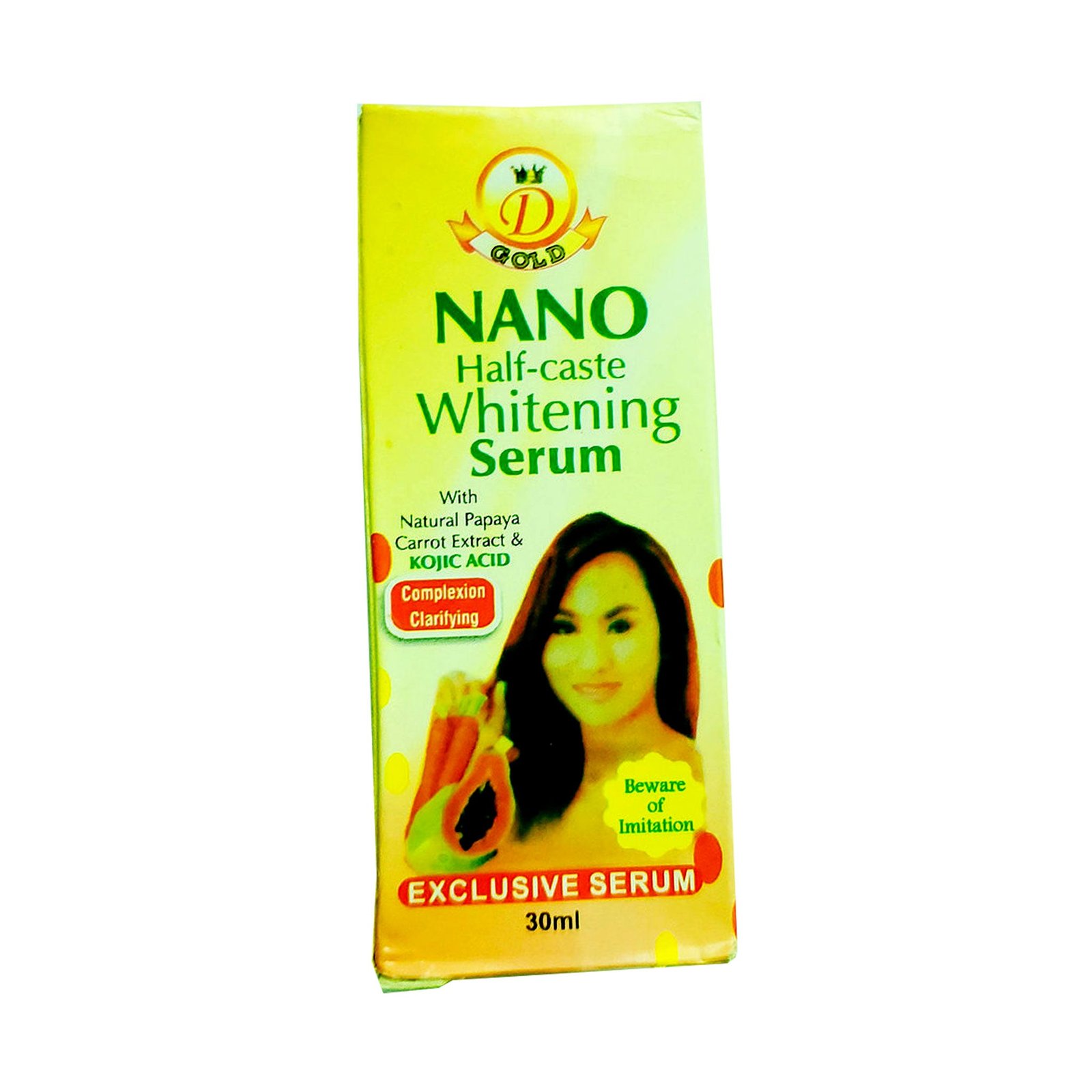 Nano Half Caste Whitening Serum (30ml) is a high-potency beauty booster designed for those who seek to accelerate their skin-lightening results and achieve a “half-caste” glow. This serum is formulated with an intensive concentration of active whitening agents, including Glutathione, Kojic Acid, and concentrated fruit acids. It aggressively targets hyperpigmentation, dark spots, and stubborn areas of uneven tone on the face and body.