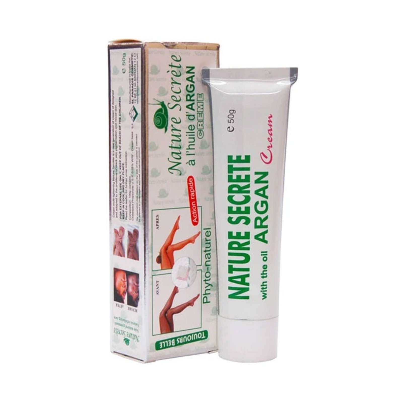 Nature Secrete With Oil Argon Cream Tube (50GN) is a concentrated facial treatment designed to resolve difficult hyperpigmentation and restore skin clarity. This “Nature Secrete” cream is formulated with pure Argan Oil and a potent blend of botanical whitening agents. Argan oil is rich in Vitamin E and essential fatty acids that help to repair damaged skin tissue and improve skin elasticity.