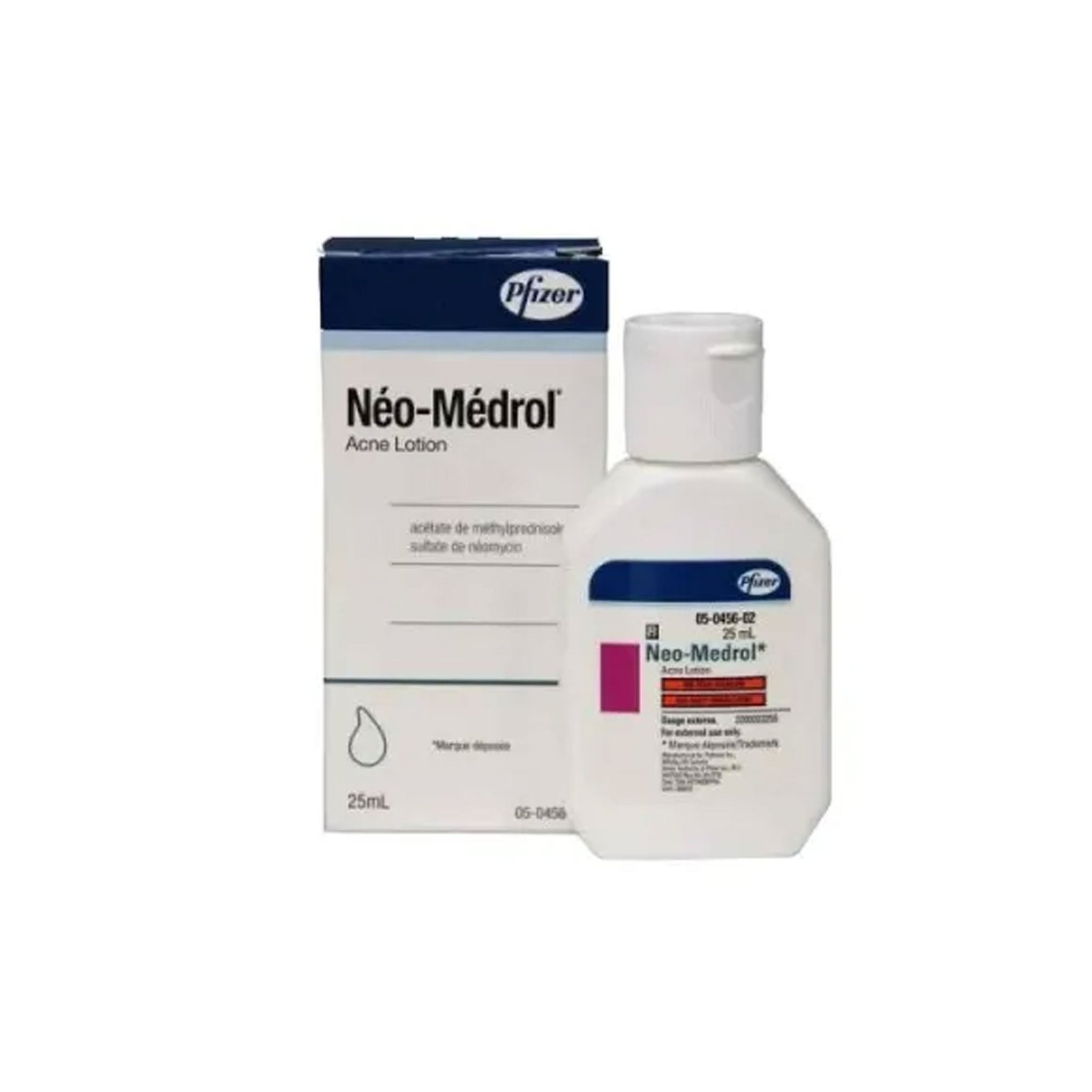 Neo- Medrol Acne Lotion (2.5mg) is a specialized medicated treatment designed to resolve inflammatory acne and various skin eruptions. This lotion typically contains a combination of Methylprednisolone (a corticosteroid) and Aluminum Chlorohydrate, which work together to reduce redness, swelling, and itching associated with active pimples. It acts by supressing the skin’s inflammatory response and drying out the blemish.