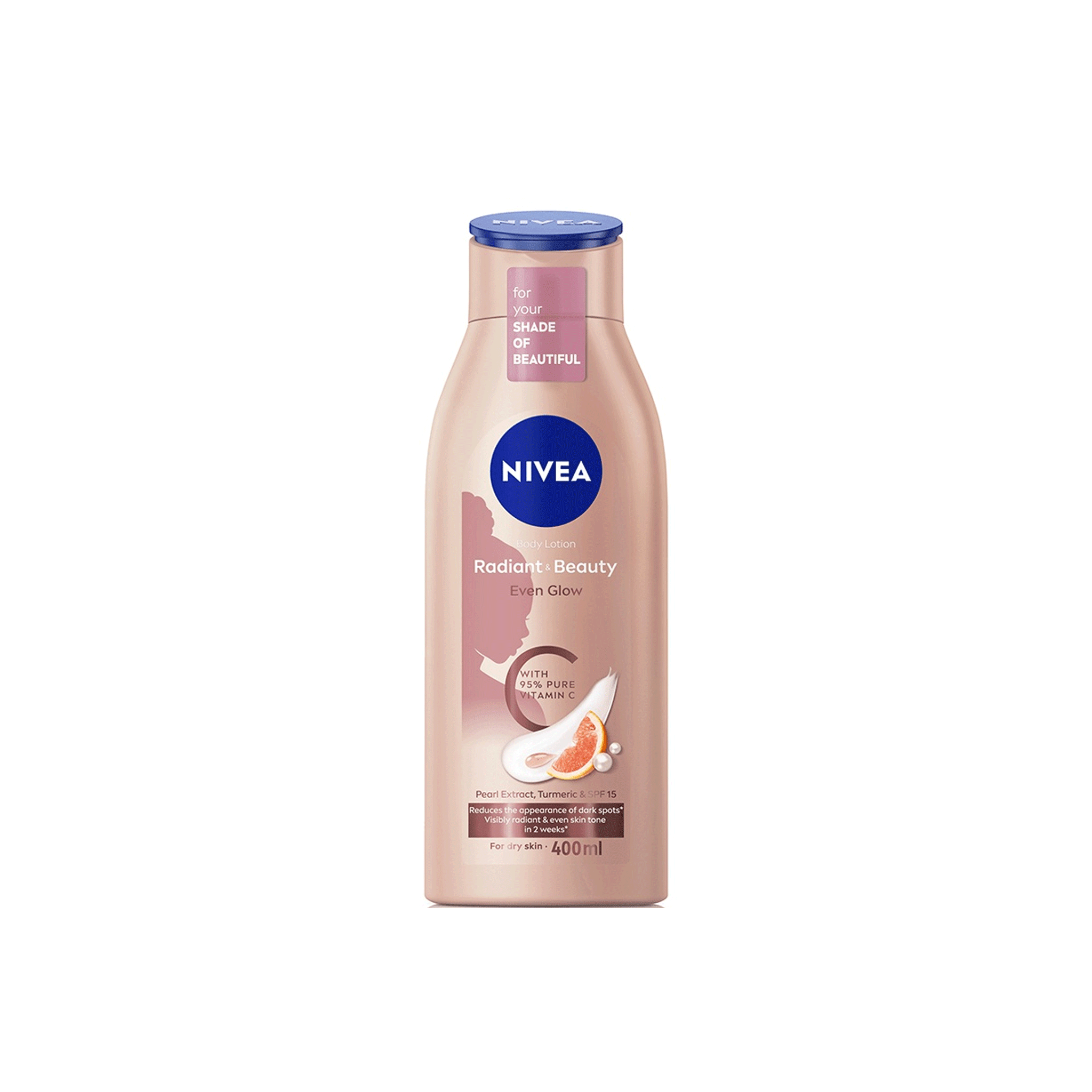 + Delivery in 24 Hours!NIVEA Radiant & Beauty Even Glow Body Lotion- 400ml is the body lotion for melanin-rich skin with 95% Vitamin C, Pearl Extract, and Turmeric that reduces stretch marks and dark spots.