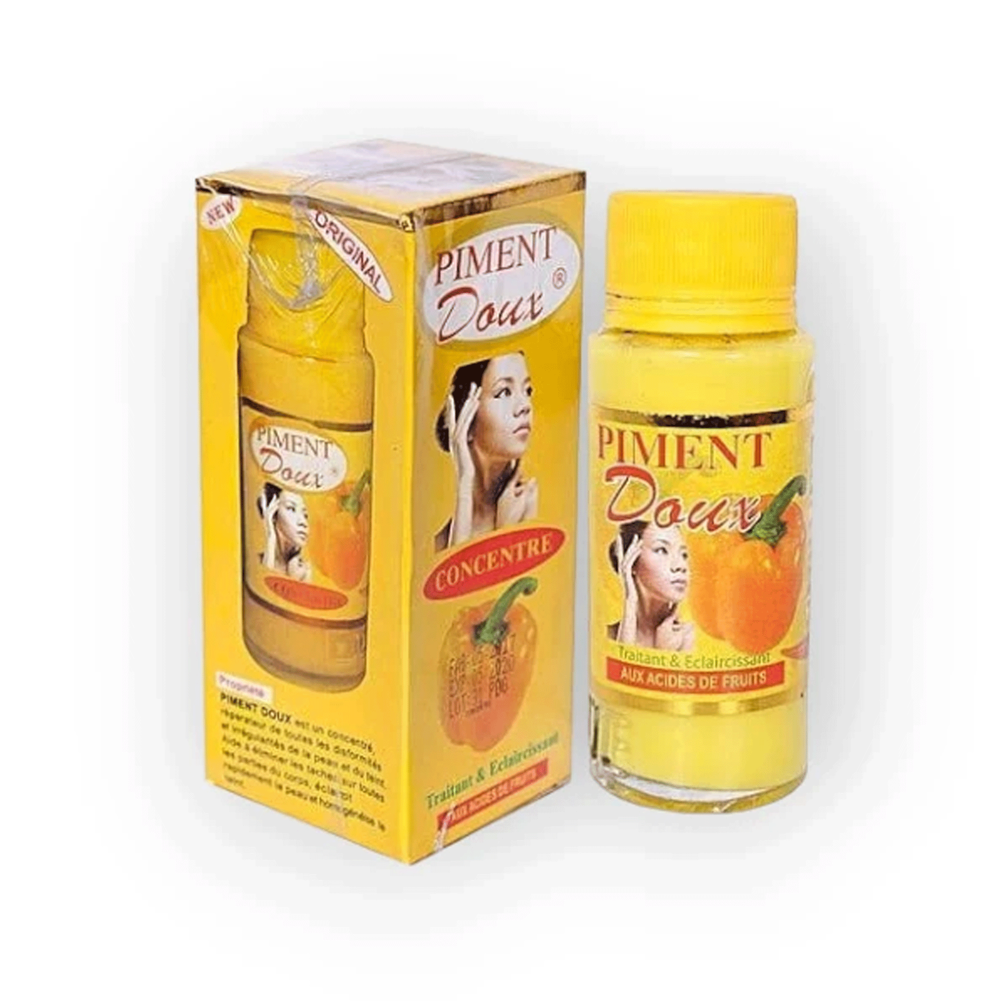 Piment Doux Lightening Serum 50ml is a highly concentrated “booster” serum designed to treat tough skin discoloration. It acts as a powerful additive that can be mixed into body lotions and creams to significantly enhance their whitening potency. The formula targets the most stubborn areas such as dark knuckles, elbows, and knees, helping to blend them with the rest of the skin tone.