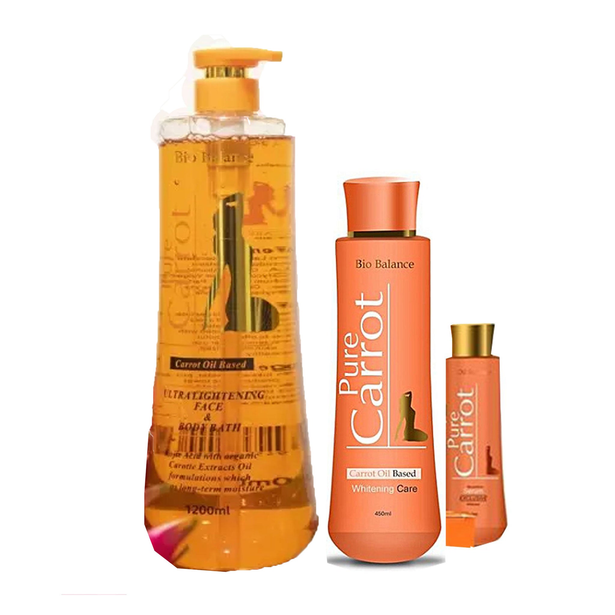 The Pure Carrot Bio Balance Lightening Pack of 3 is a comprehensive skincare system designed for individuals who desire a complete and professional-grade solution for a fair and healthy complexion. This set includes the high-potency Bio Balance Body Lotion, the concentrated Serum, and the rejuvenating Shower Gel. All three products harness the natural power of high-quality carrot oil, which is rich in Beta-Carotene and Vitamin A, to rejuvenate the skin and promote a healthy radiance.