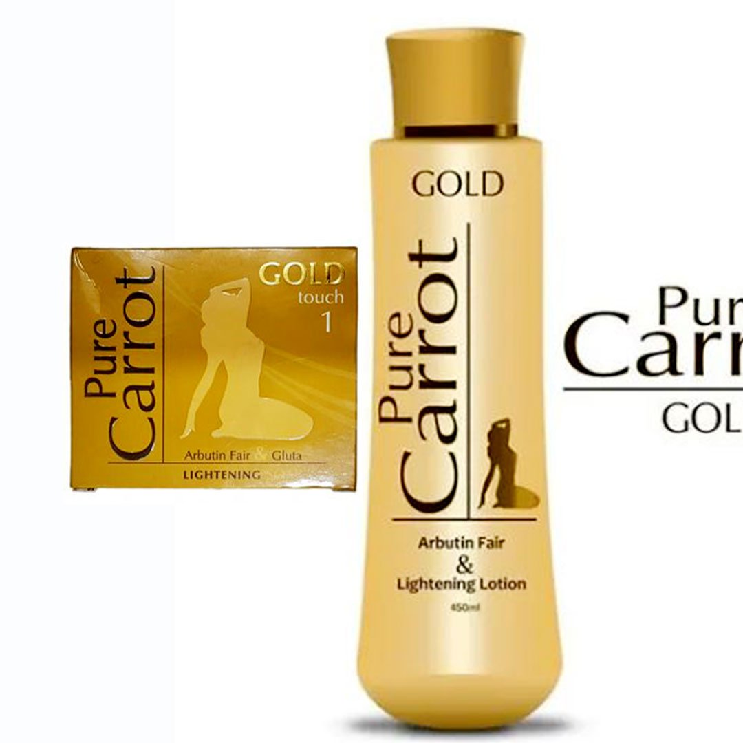 The Pure Carrot Gold Lightening (Soap and Lotion) Pack of 3 is a luxurious whitening duo designed to promote a healthy, golden-white and shimmering body tone. This set includes the Gold Toning Lotion and the clarifying Soap. Formulated with natural Carrot Oil and light-reflecting micro-particles, it provides a unique “Gold” radiance that makes the skin look polished and vibrant.