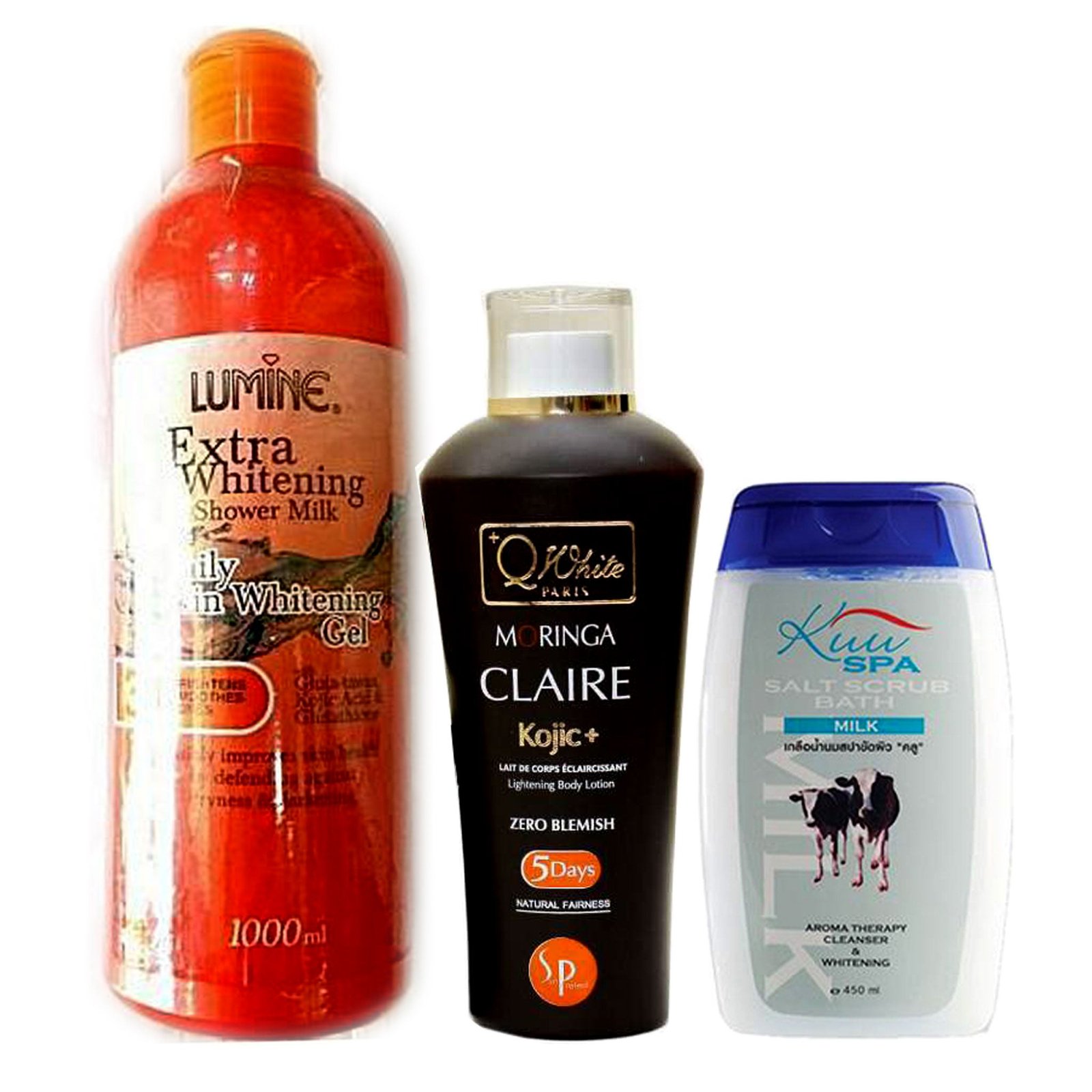 Q White Lotion, Lumine Whitening Gel & Kuu Spa Salt Milk Scrub Pack Of 3