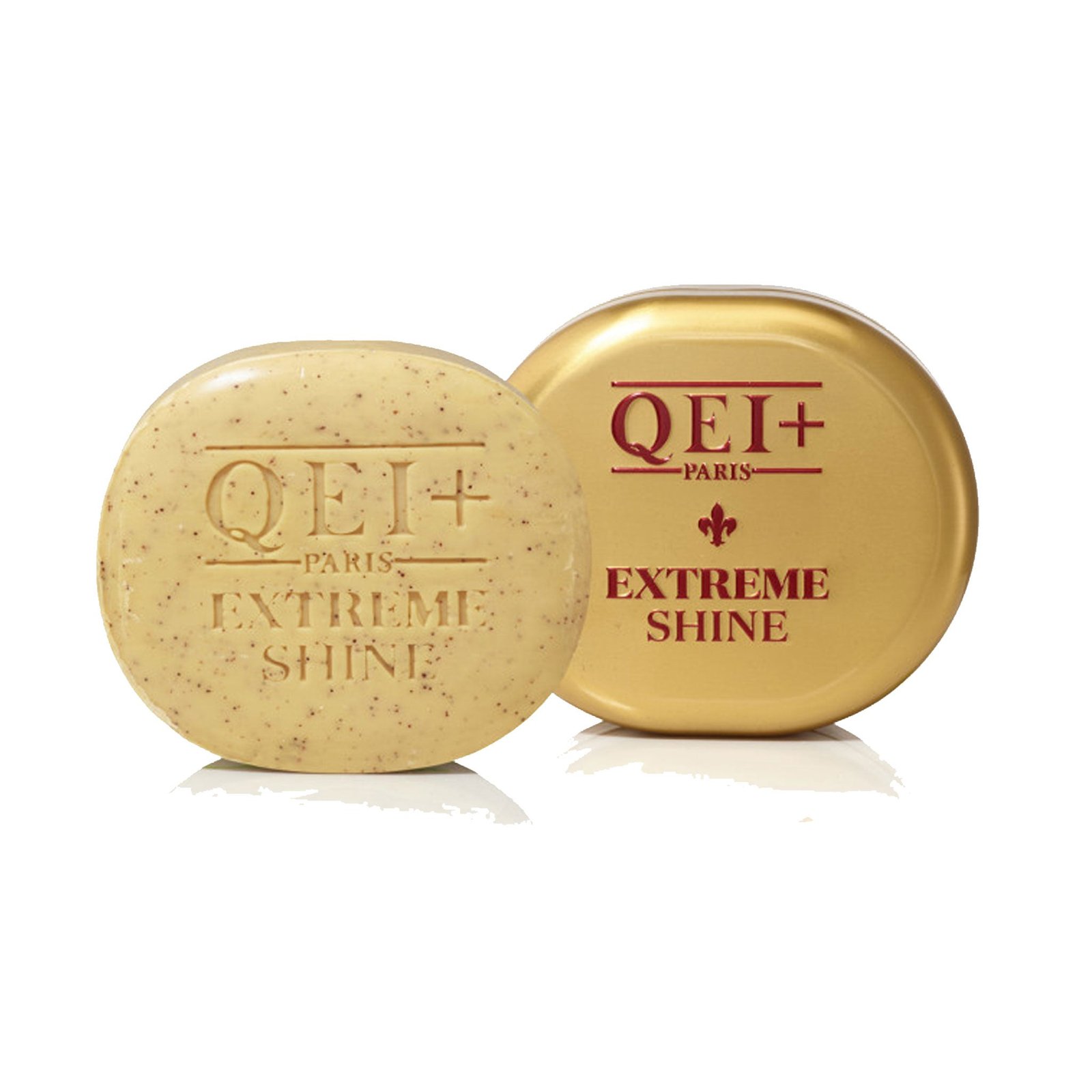 QEI BRIGHTENING SOAP – EXTRÊME SHINE GOLD is a premium cleansing bar that forms the foundation of a luxurious and successful whitening regimen. Part of the specialized Extreme Shine Gold range, this soap is formulated with real gold particles and active botanical brightening agents. It works by providing a deep, thorough clean, removing dirt, excess oil, and environmental pollutants that can cause the face and body to look dull.