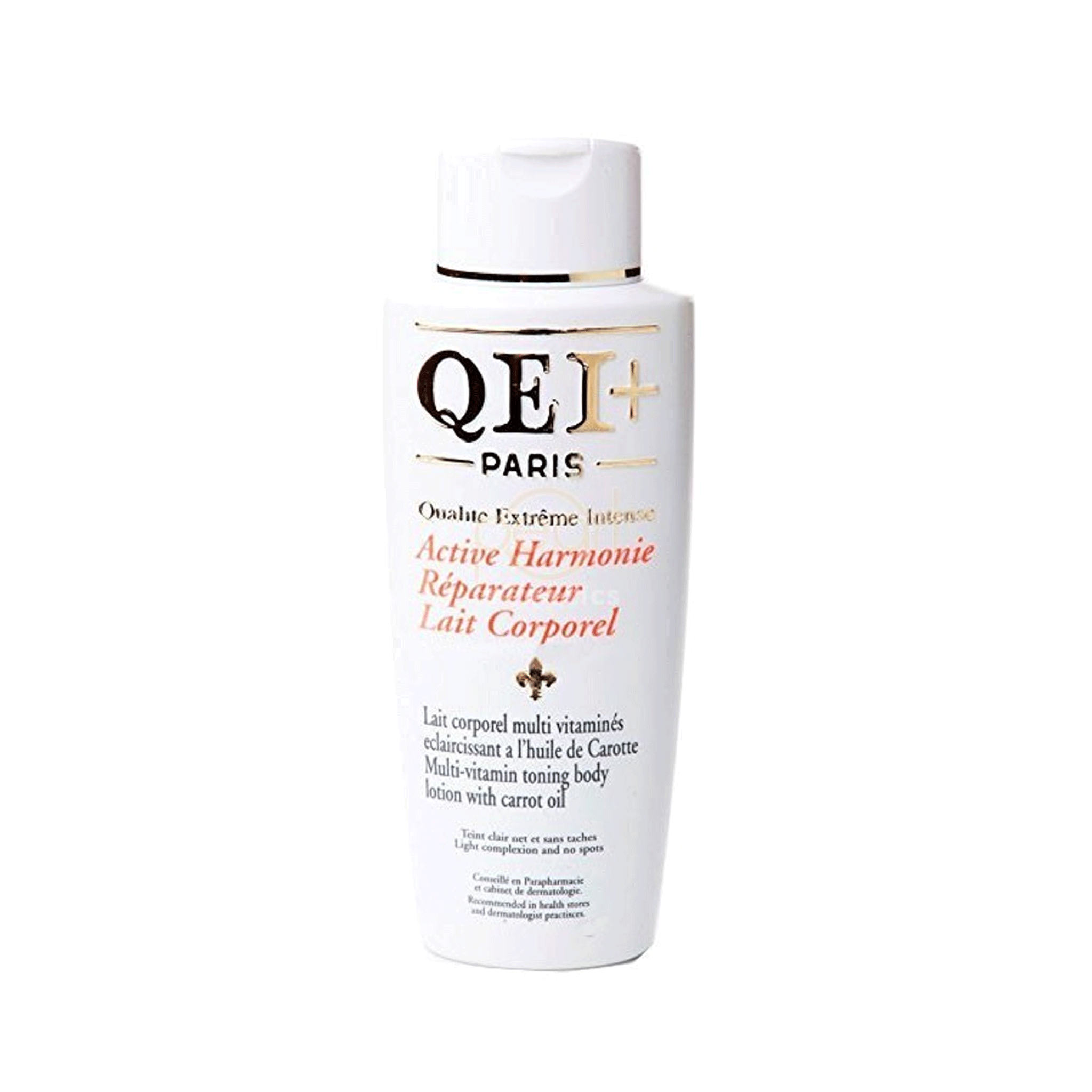 QEI Paris Active Harmonie Reparateur Lait Corporel Lotion is a high-performance skin-lightening treatment designed for individuals who desire a professional-grade whitening result. As part of the prestigious Active Harmonie line, this lotion is formulated with high-quality botanical extracts and active whitening complexes that target melanin production across your entire physique.