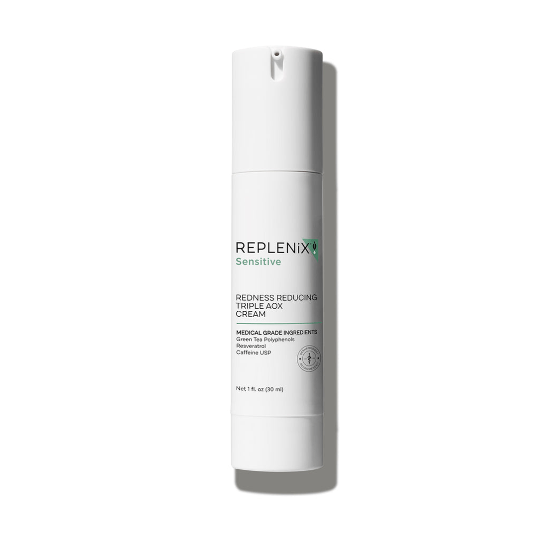 Replenix Redness Reducing Triple AOX Cream 30ml is a specialized treatment designed specifically for those with rosacea, chronic redness, and sensitive skin. The benefit of this “Triple AOX” formula is its combination of 90% Green Tea Polyphenols, Resveratrol, and Caffeine. These powerful antioxidants work synergistically to provide a significant anti-inflammatory effect, calming visible redness and soothing irritated skin on contact.