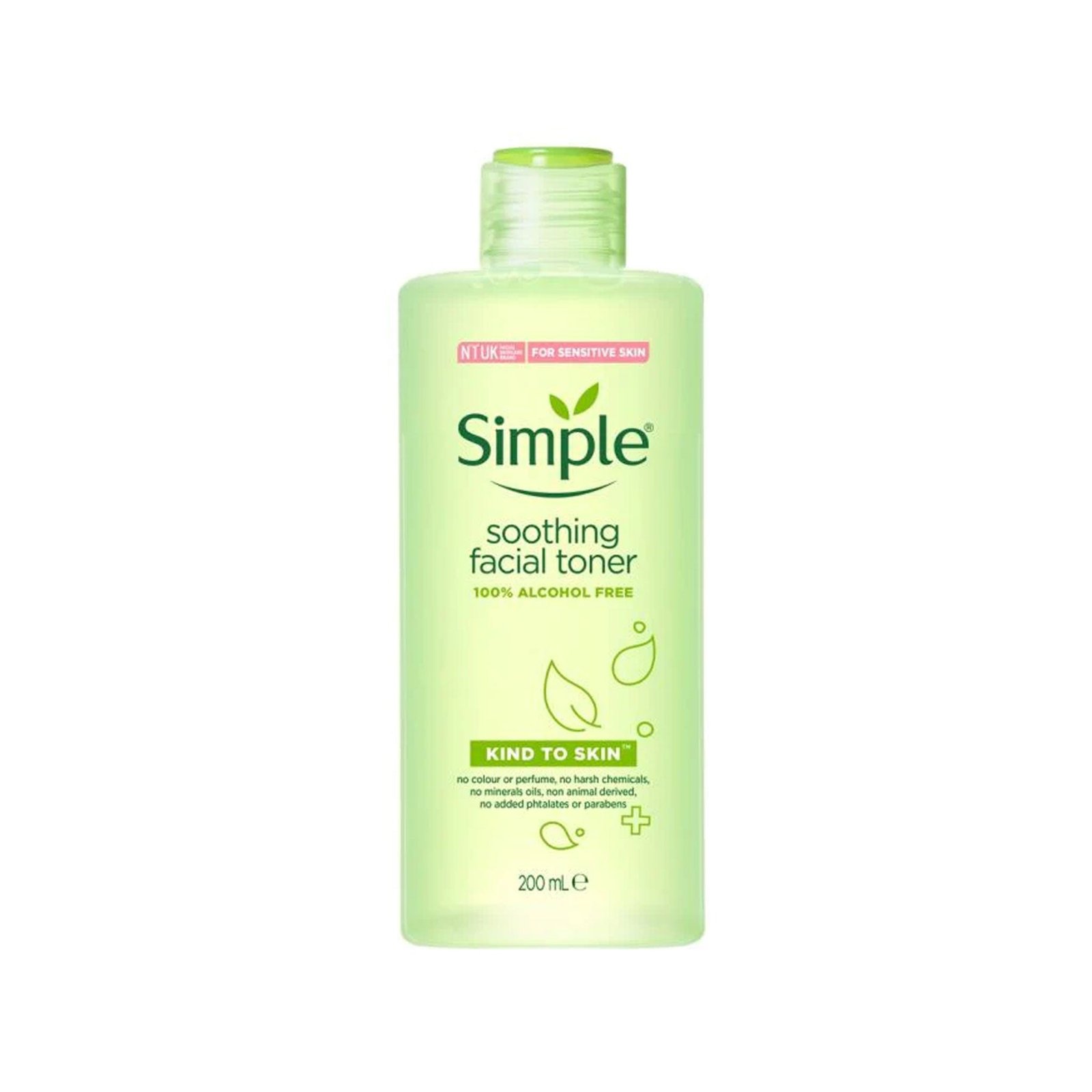 Simple Kind to Skin Soothing Facial Toner is a non-drying, alcohol-free formula that provides a vital finishing touch to your cleansing routine. This toner helps to remove the last traces of dirt and impurities while tightening pores and refining the skin’s overall texture. It is formulated with skin-loving ingredients like Pro-Vitamin B5, Witch Hazel, Allantoin, and Chamomile, which work together to soothe, tone, and refresh the skin without causing irritation.