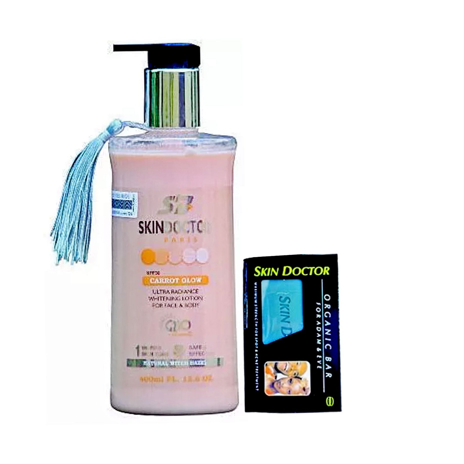 + Delivery in 24 Hours!Skin Doctor Carrot Glow ( Loion And Soap ) Pack of 3 is the 2-piece whitening set with Carrot Oil that inhibits melanin and repairs skin for a fair, radiant, and unified body tone.