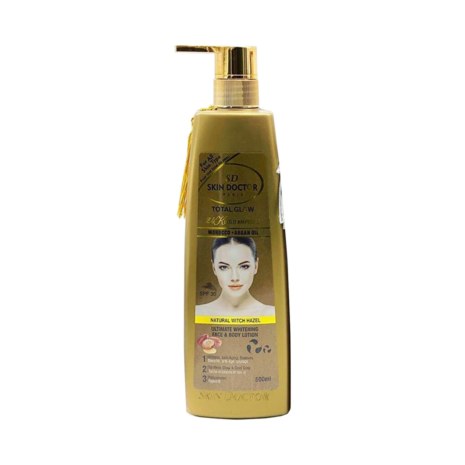 Skin Doctor Total Glow Morocco+Argan Kojic Acid is a premium body lotion that combines the intensive nourishment of pure Moroccan Argan Oil with the powerful skin-lightening benefits of Kojic Acid. Argan Oil is exceptionally rich in Vitamin E and essential fatty acids that work to deeply hydrate and protect the skin, while Kojic Acid targets melanin production to fade dark spots and unify the complexion.