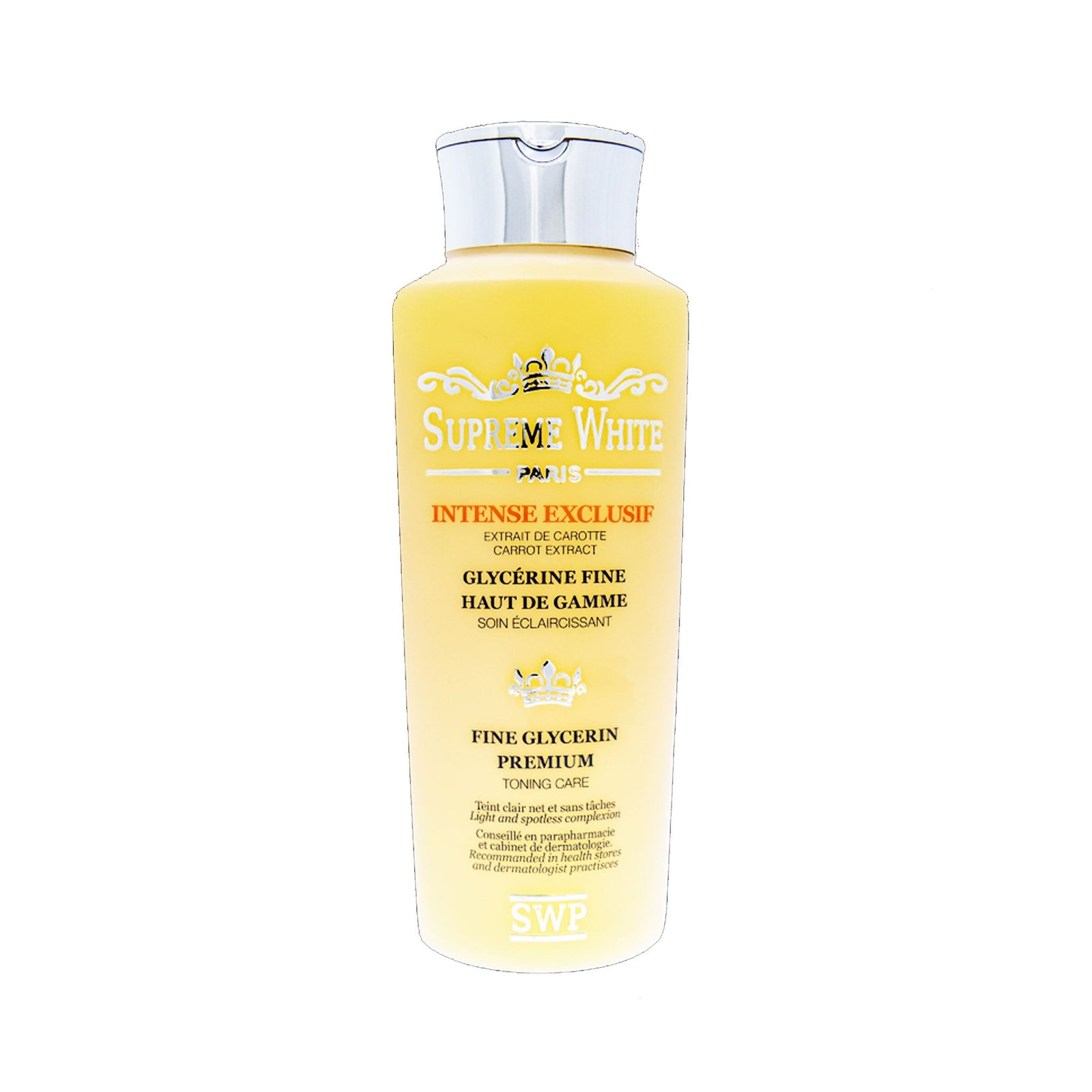Supreme White Intense Exclusive Carrot Glycerin is a high-end skin-toning treatment designed to provide both intensive brightening and deep hydration. This premium “Fine Glycerine” combines the skin-rejuvenating power of natural carrot oil with active whitening agents. Carrot oil is rich in Vitamin A and Beta-Carotene, which help to unify the skin tone and restore a youthful glow across the entire body.