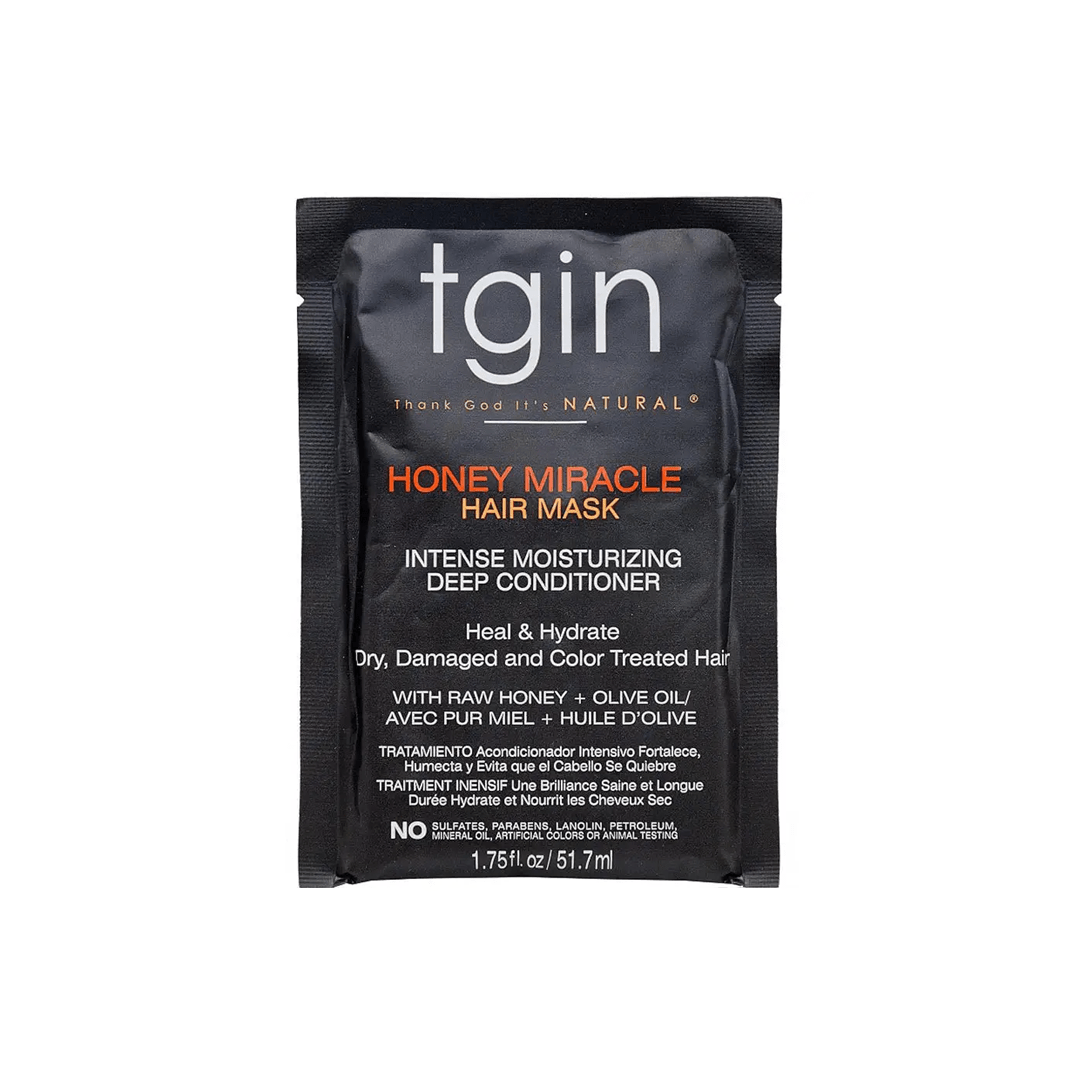 Thank God it’s Natural (TGIN) Honey Miracle Hair Mask 51.7ml is a potent, deep-conditioning treatment designed to transform dry, damaged, or color-treated hair into a soft and manageable mane. The benefit of this mask is the use of Raw Honey, a natural humectant that draws moisture into the hair shaft, and Olive Oil, which provides essential fatty acids for deep nourishment.