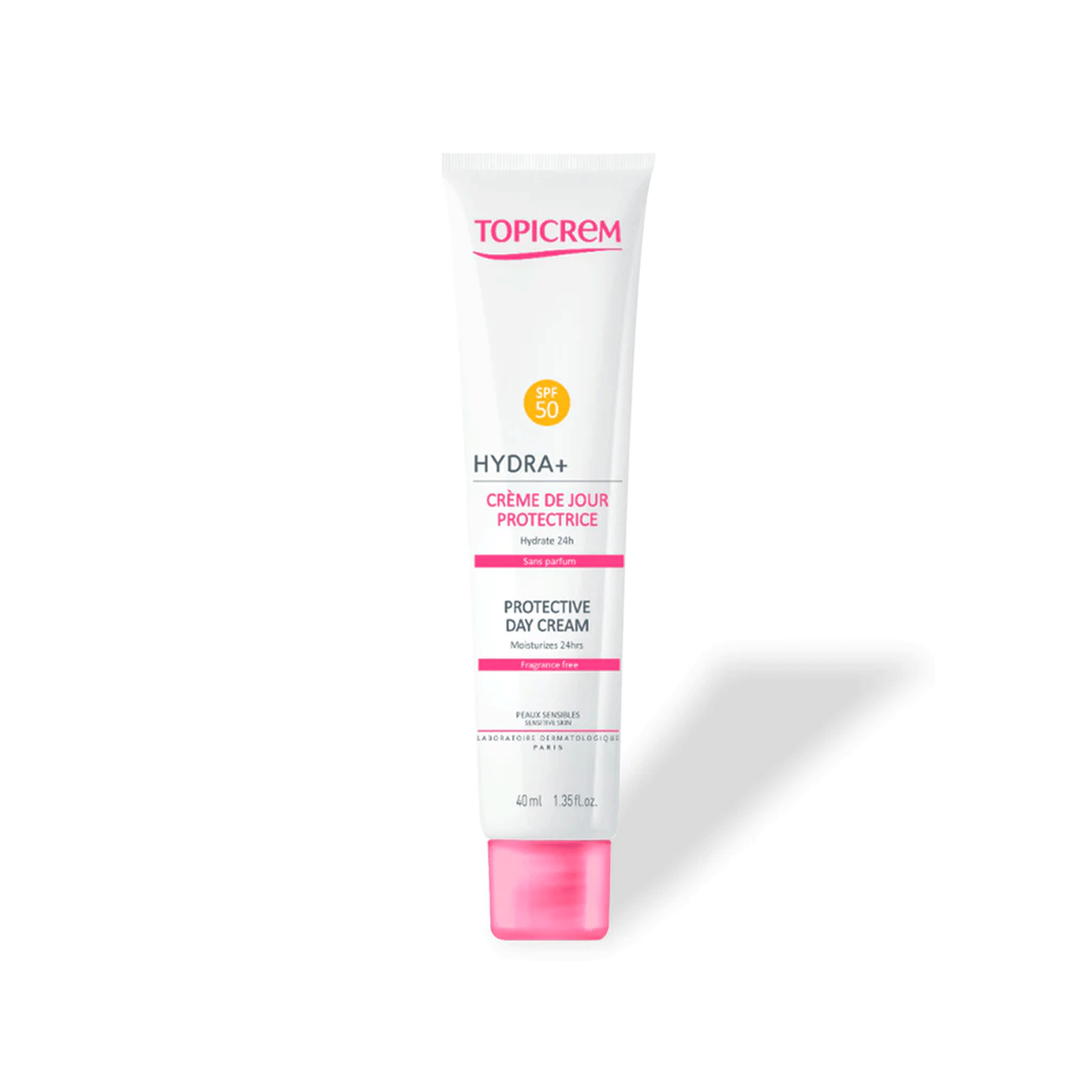 TOPICREM HYDRA+ PROTECTIVE DAY CREAM SPF50 is a dermatologically developed treatment designed to provide intensive hydration and superior sun protection for sensitive skin. This 40ml cream features a high SPF 50 rating to safeguard your face against harmful UVA and UVB rays, preventing sunburn, dark spots, and premature aging. Formulated with a biomimetic water complex, it provides up to 24 hours of moisture, ensuring your skin remains soft and healthy throughout the day.